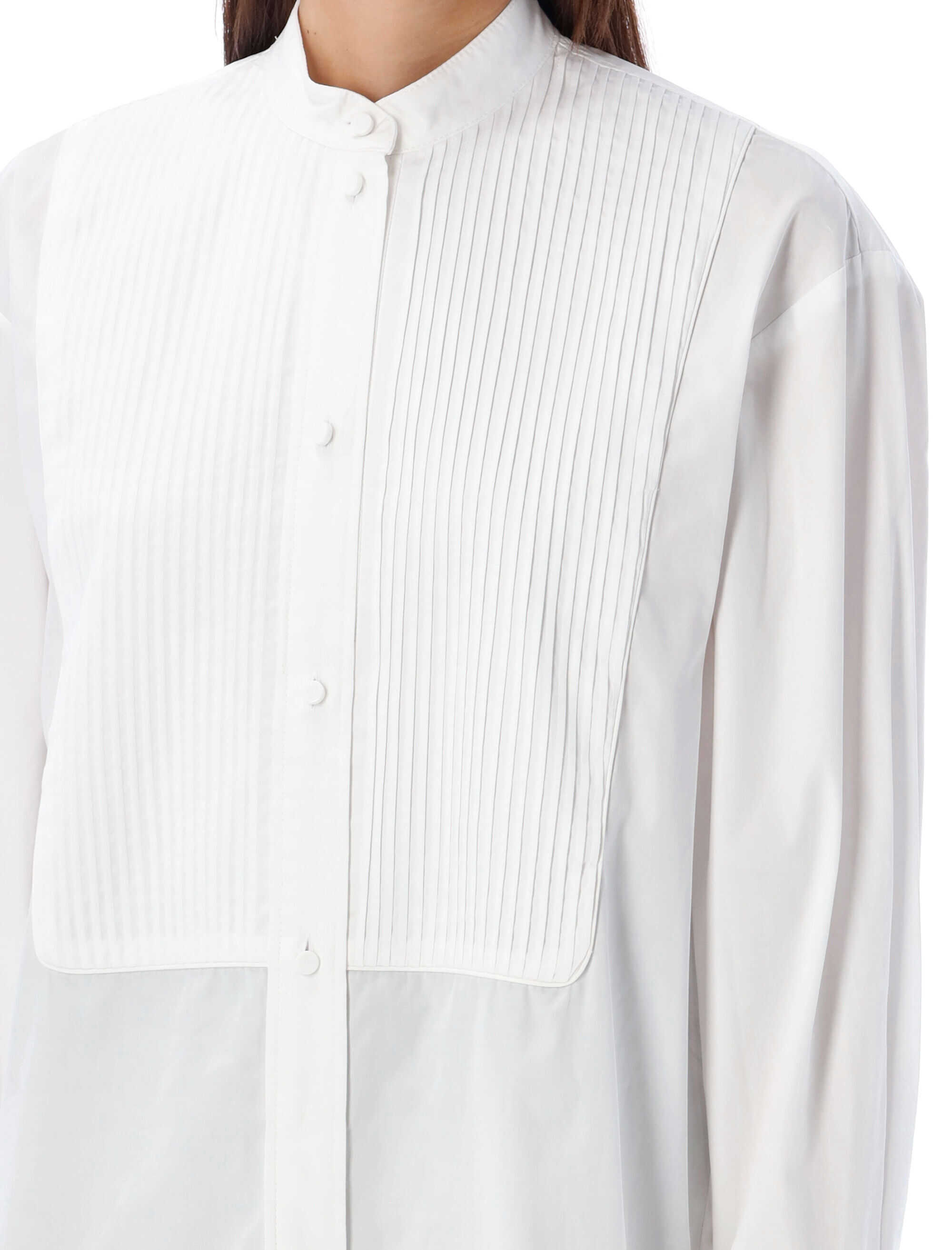 Elevate your wardrobe with the timeless elegance of the Ramsey shirt by Isabel Marant. Crafted from luxurious 100% cotton, this white shirt features a stand-up collar, pleated bib, button closure, and long sleeves with buttoned cuffs. The oversized fit and rounded hem add a contemporary twist to this classic piece. Perfect for any occasion, this shirt will effortlessly take you from day to night in style.