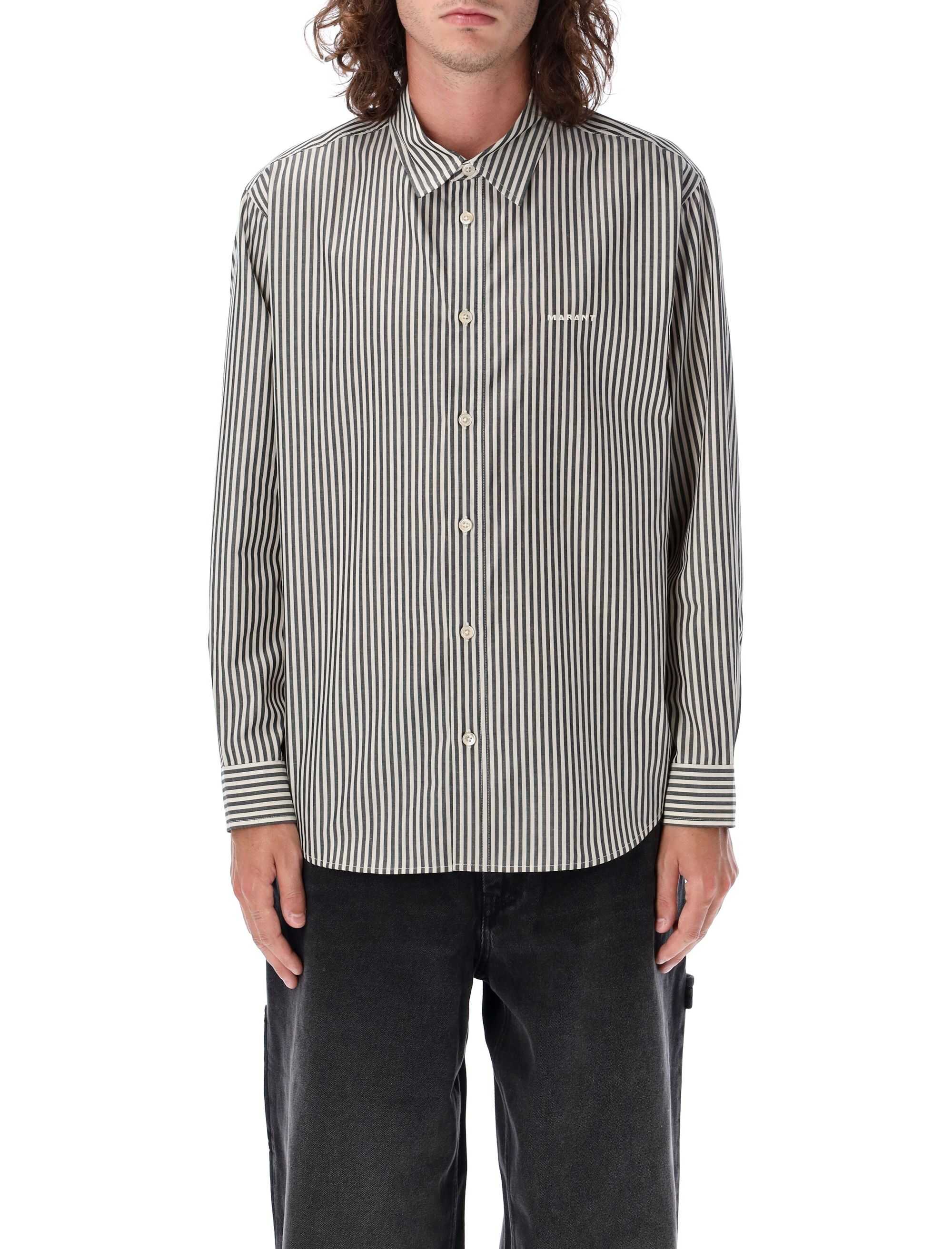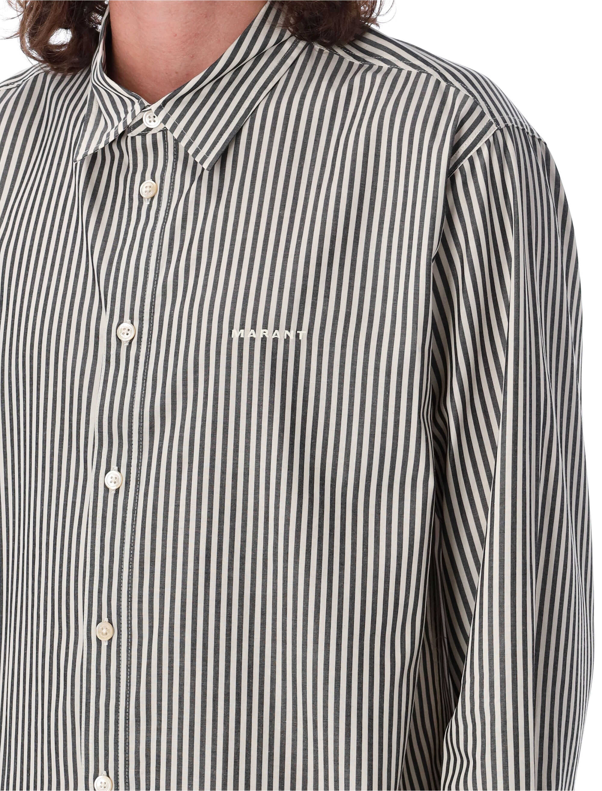 Elevate your style with the Cybil shirt by Isabel Marant. Made from 100% cotton, this shirt features a relaxed fit, classic button-down front closure, and a stylish vertical striped pattern. The embroidered 'Marant' logo on the chest adds a touch of sophistication. Perfect for the modern man who values both comfort and fashion. Get yours now and stand out from the crowd!