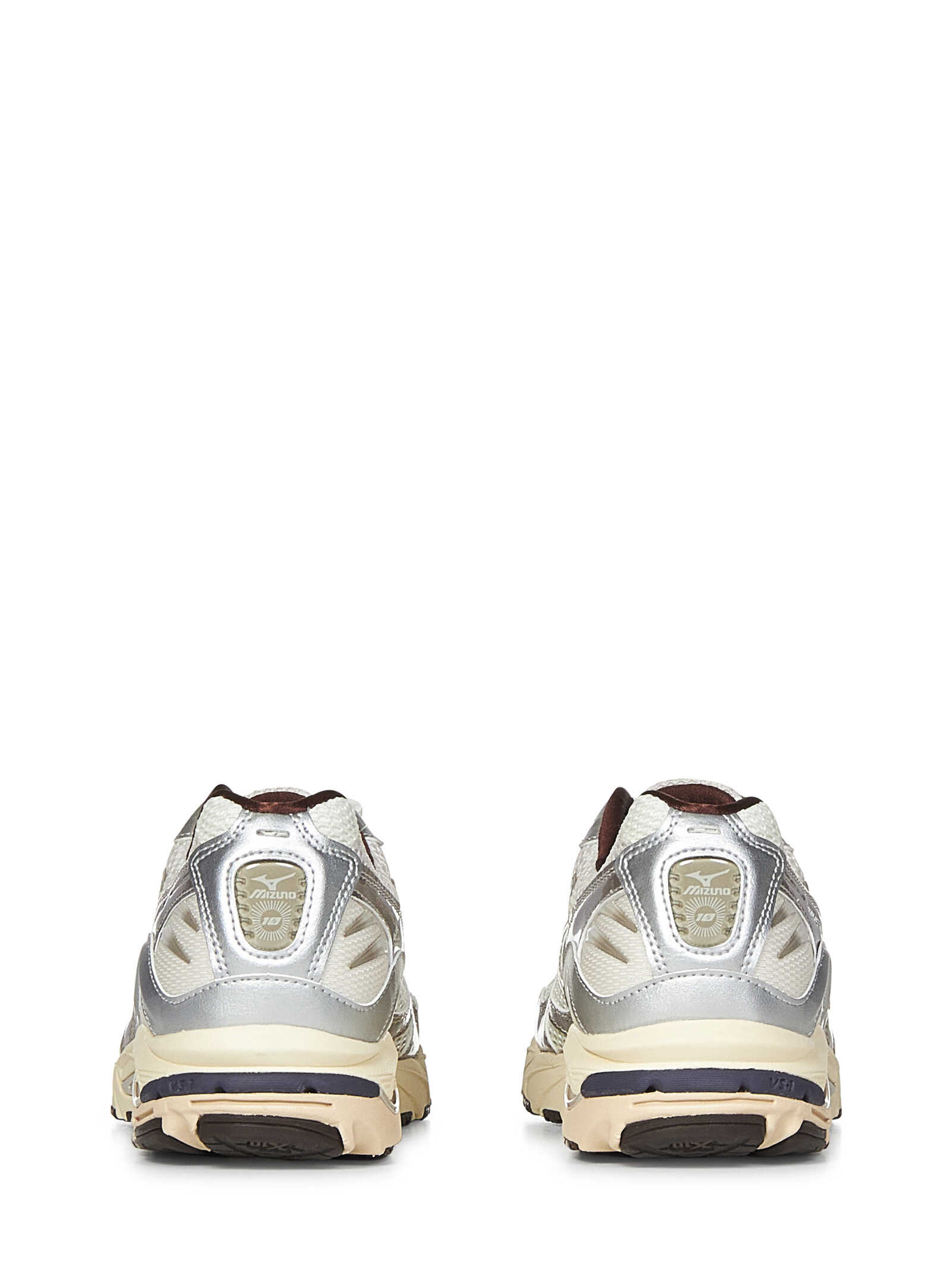 WAVE RIDER 10 sneakers in white mesh and silver leather with brown details.