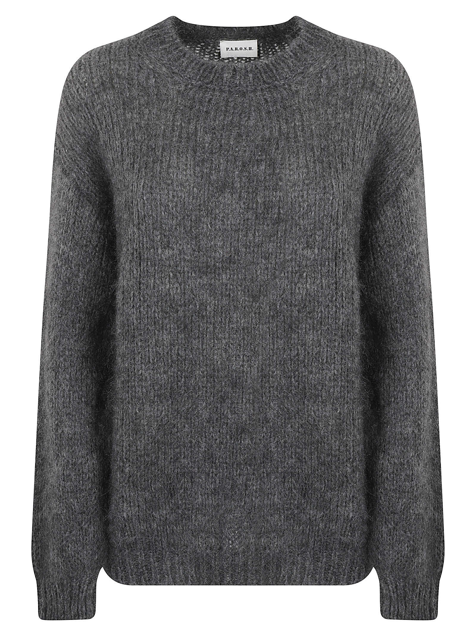 Elevate your wardrobe with the Parosh Sweater in Grey. This stylish piece is perfect for any occasion, offering both comfort and elegance. Made by PAROSH, it combines quality and design for a must-have addition to your clothing collection.