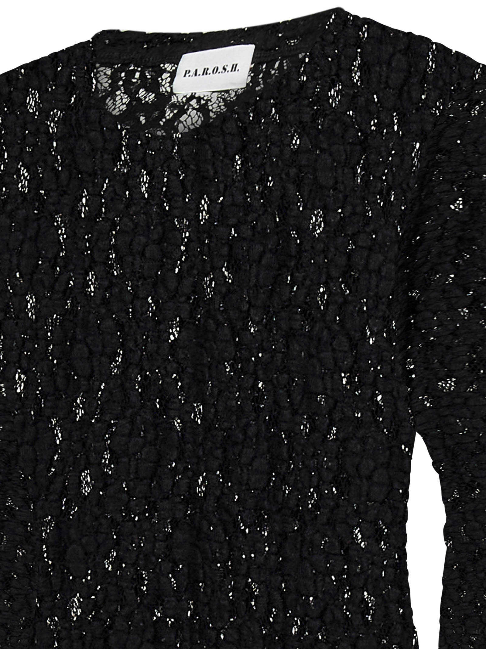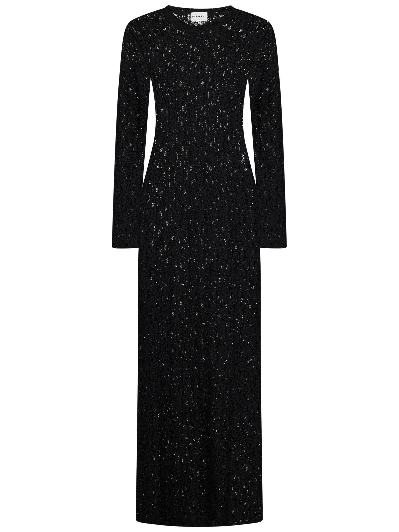 Black stretch cotton blend floral lace long-sleeved maxi dress.