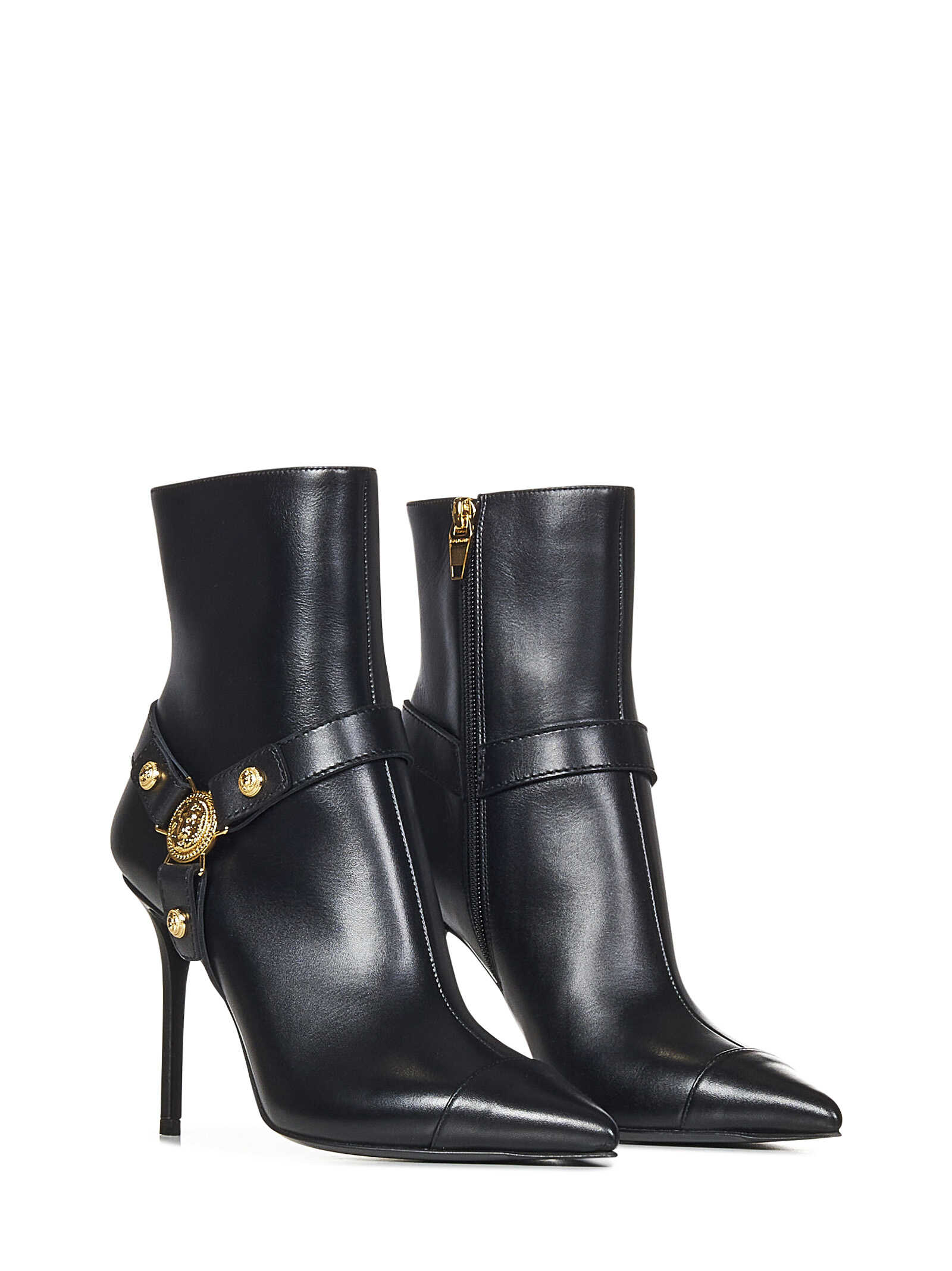 Eva black calf leather ankle boots with ''Signature Lion Coin'' hardware details.