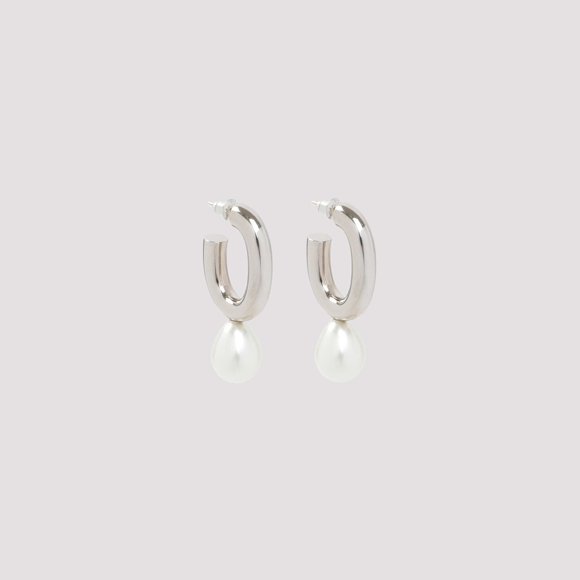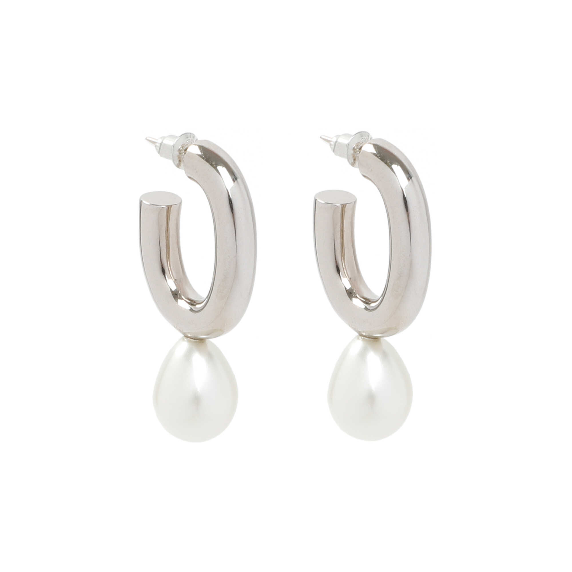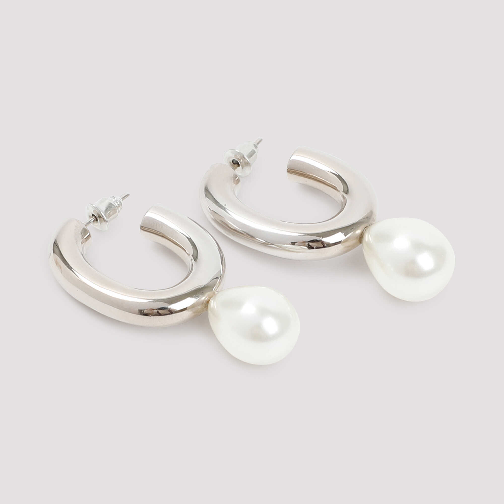 Elevate your look with these stunning Simone Rocha silver pearl egg hoop earrings. Made from pure silver-toned metal, they feature a unique pearl egg charm and chunky open hoop design. Perfect for adding a touch of elegance to any outfit. Order now and make a statement!
