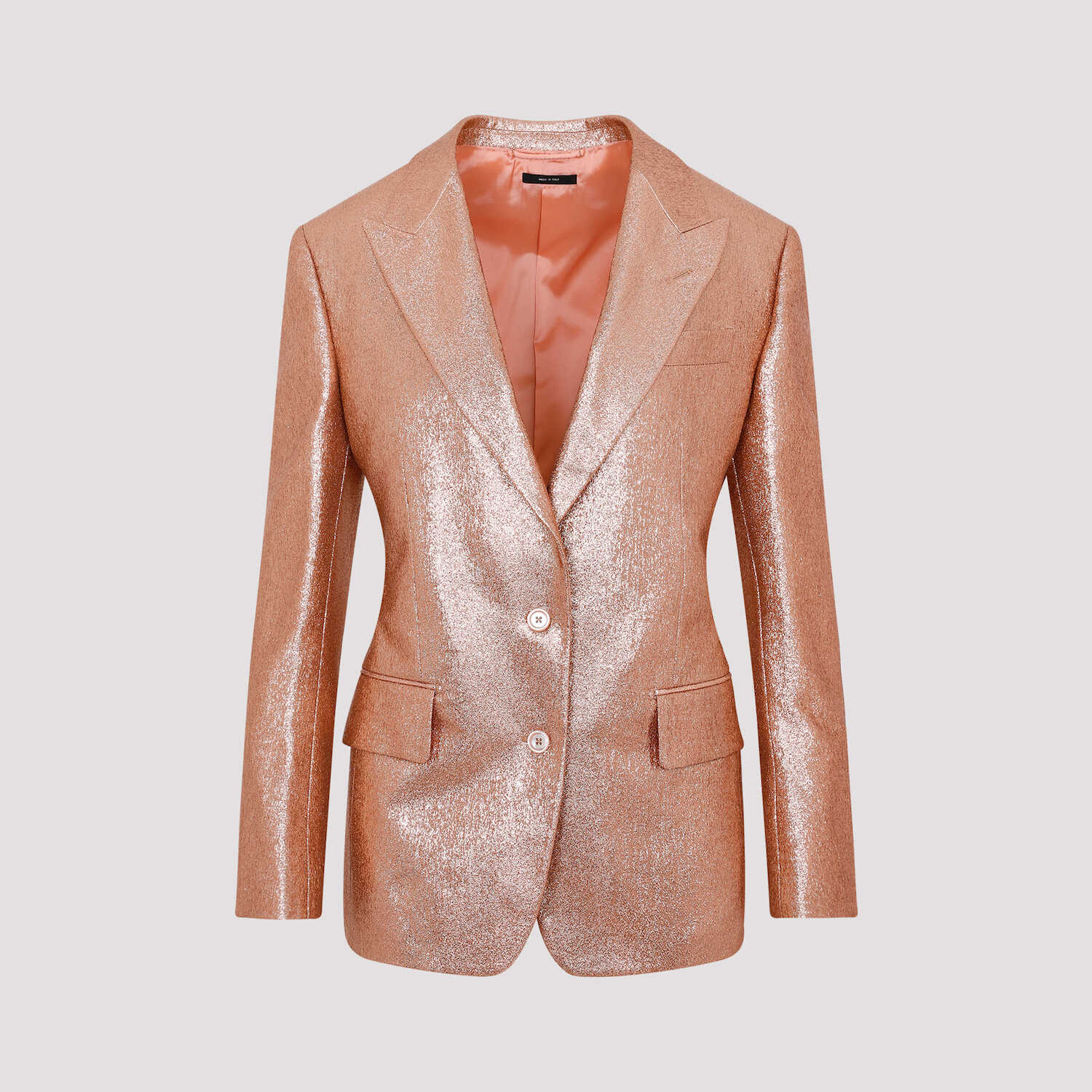 Stand out in style with this chic TOM FORD jacket. The stunning pink & purple color combination adds a touch of glamour to any outfit. Crafted from high-quality polyamide, this jacket features a notched neckline, buttoned cuffs, and front button fastening for a sleek and sophisticated look. Complete with two front flap pockets and a rounded hem, this jacket is a must-have for any fashion-forward woman.