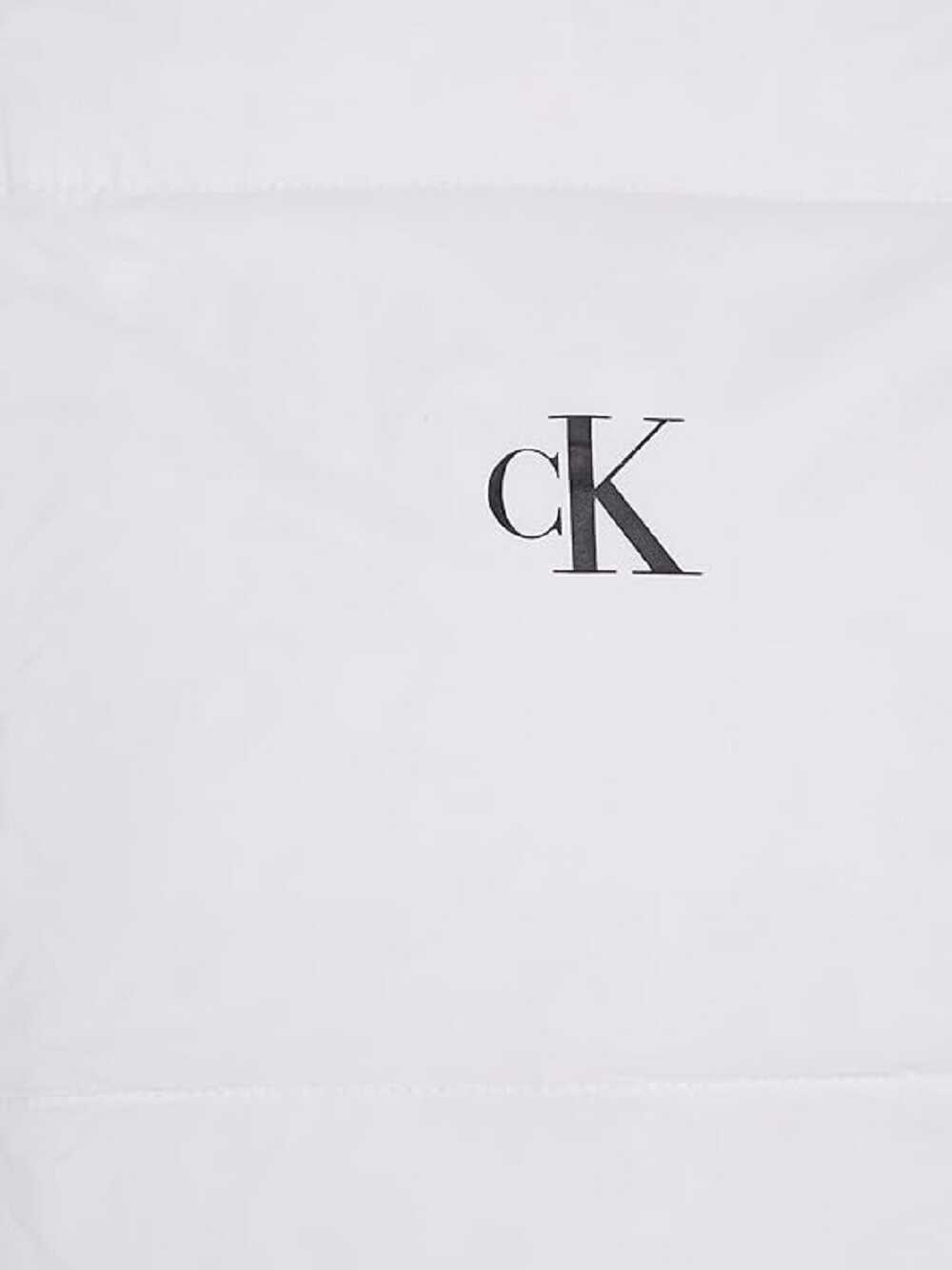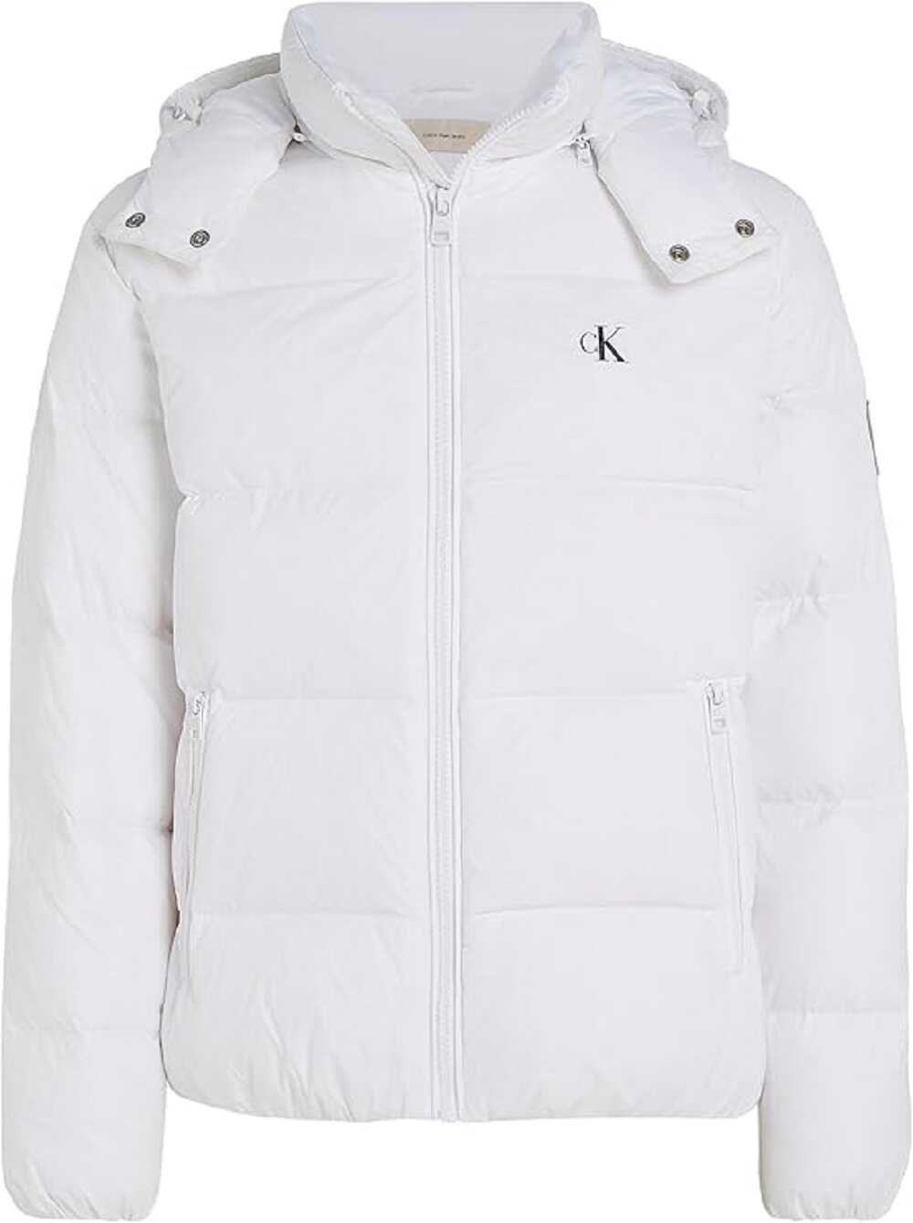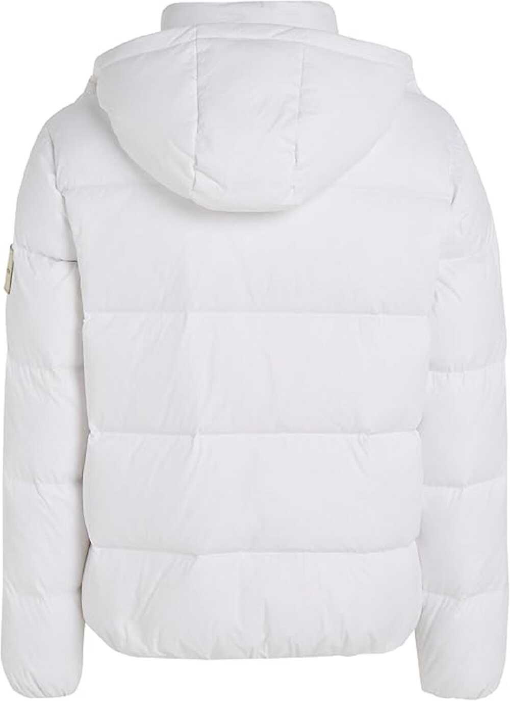 Stay warm and stylish with this Calvin Klein jacket. Made from insulated quilted material with recycled fiber materials, this jacket offers protection from the cold with a straight cut design and adjustable hood. The white color and comfortable elastic cord finish make it a must-have for any wardrobe. Perfect for everyday wear or outdoor adventures. Upgrade your outerwear collection today!