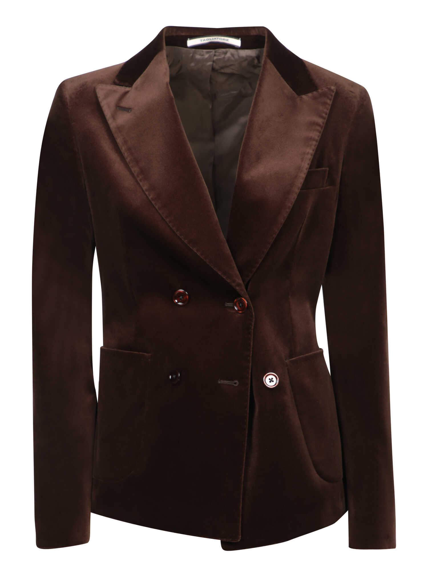 Double-breasted button closure. Notched lapels. Side flap pockets.. Expert craftsmanship meets timeless elegance in Tagliatore's brown velvet jacket. Featuring a tailored silhouette and classic details, it poses as a must-have for every sophisticated wardrobe.