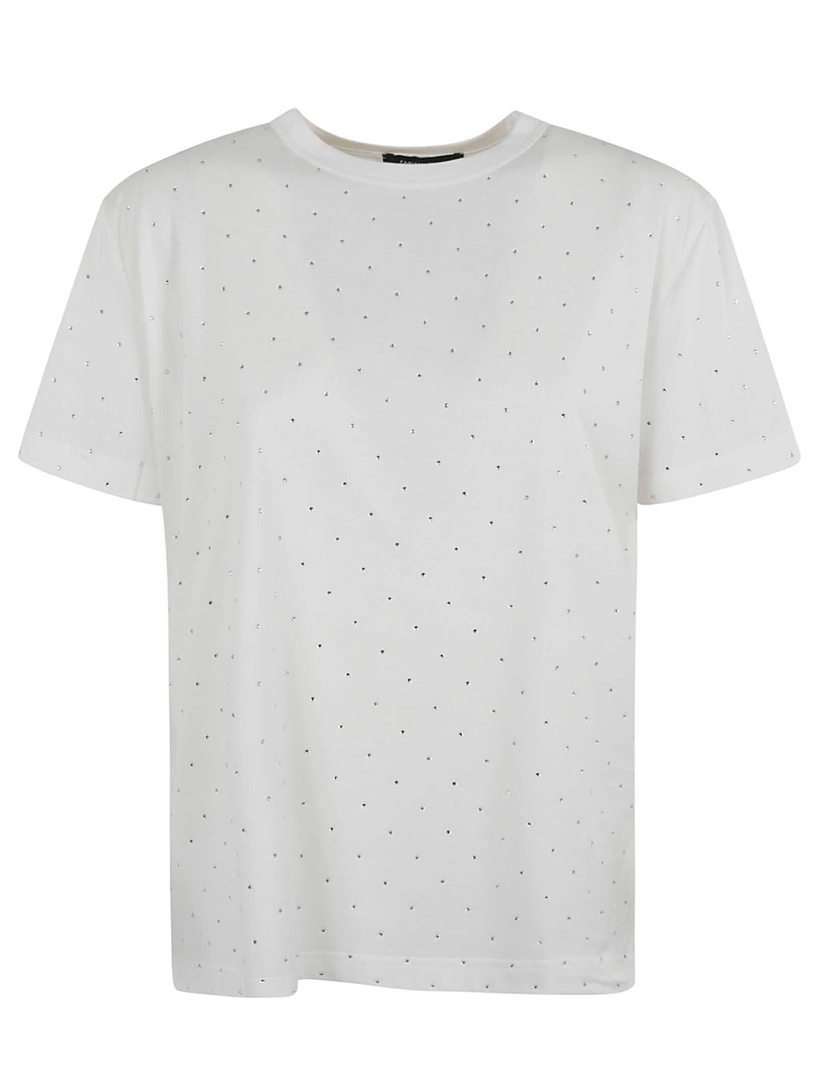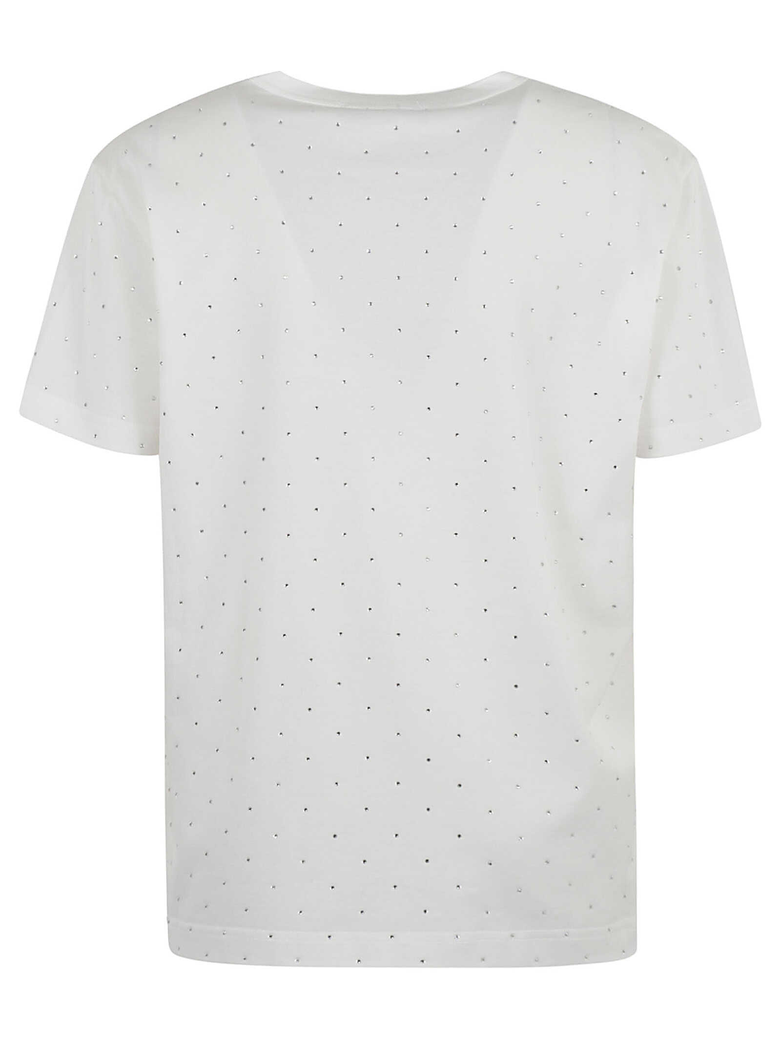 Elevate your wardrobe with the Fabiana Filippi White T-shirt. Crafted from 100% cotton, it features a lightweight jersey feel, elegant rhinestone embellishments, and a classic crew neck design. Perfect for effortless style in any casual setting.