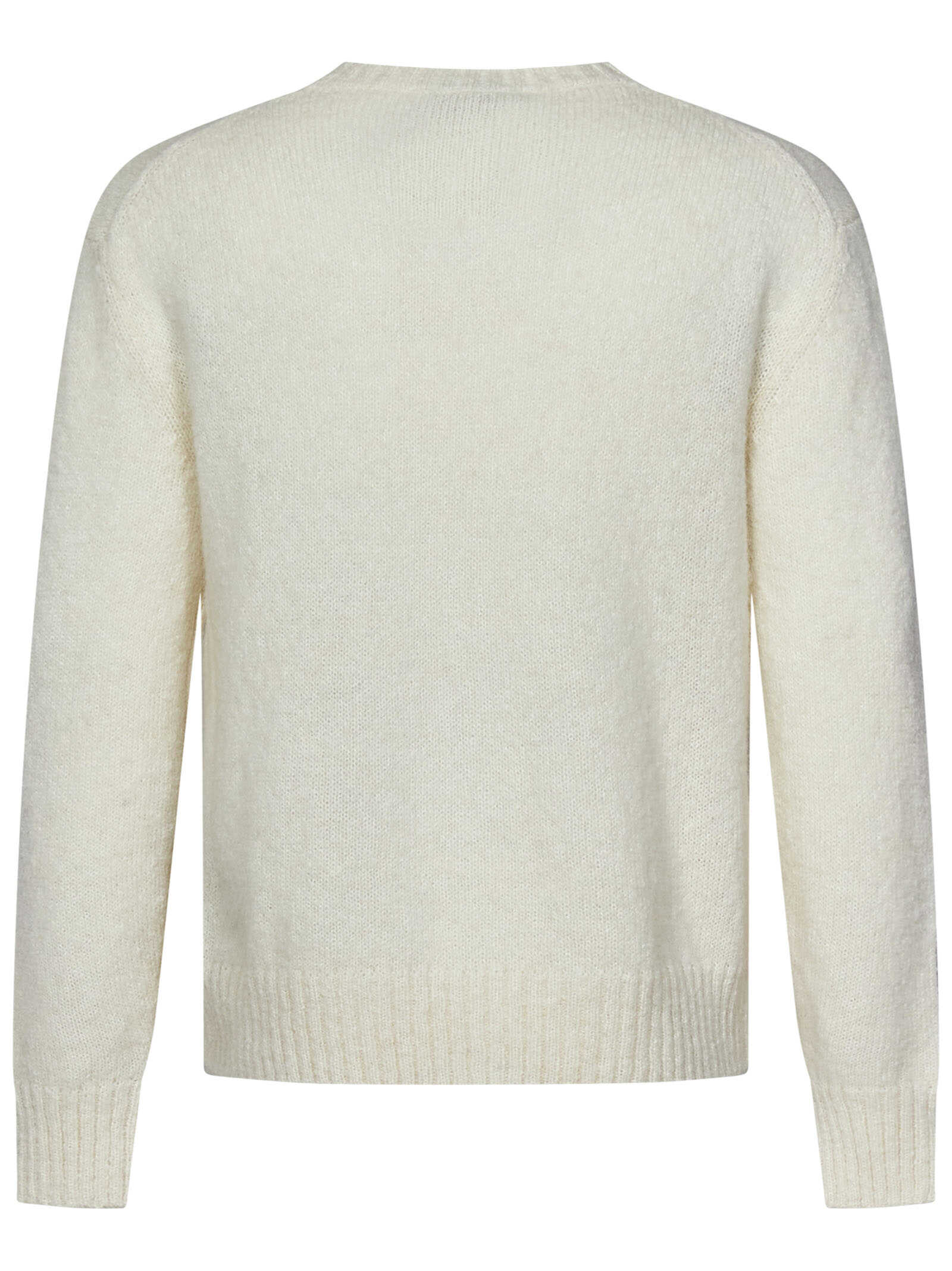 White alpaca blend knit crewneck sweater with ribbed trims.