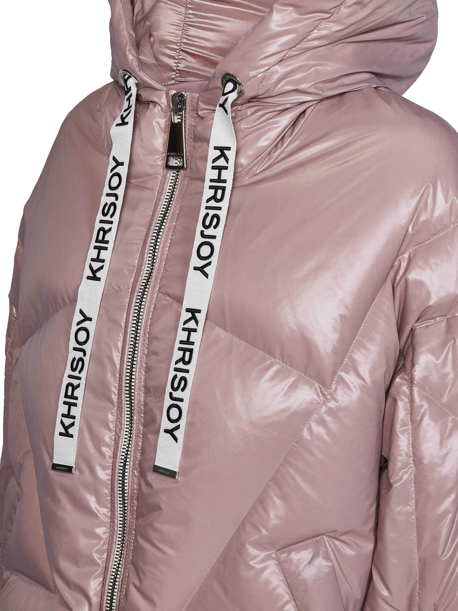 Stay cozy and stylish in this Khrisjoy Coats Pink jacket. Made with 100% Polyamide, it features a drawstring hood and a shiny antique pink finish. Perfect for adding a touch of glamour to your wardrobe. Get yours now!