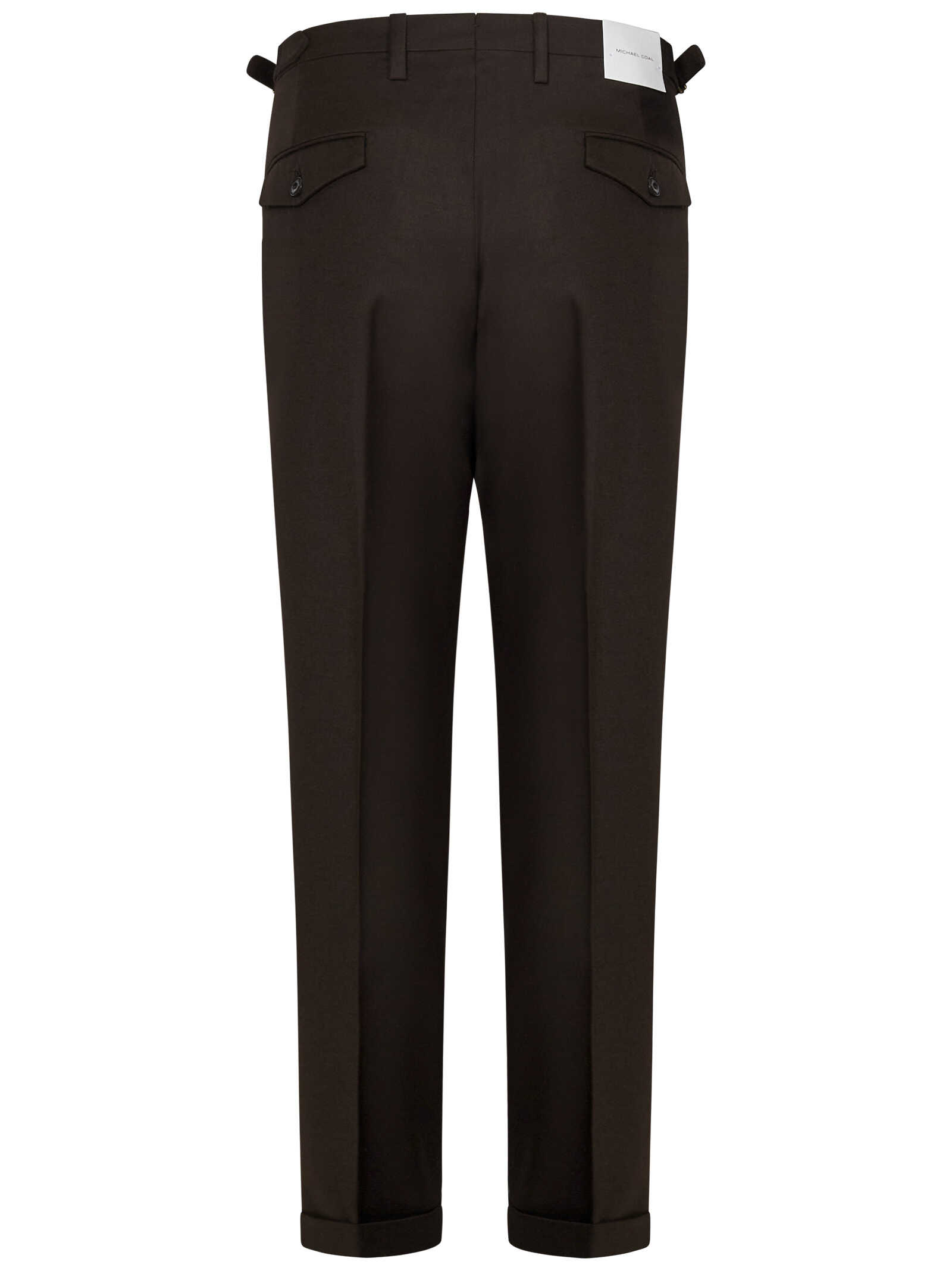 Brown stretch virgin wool FREDERICK slim trousers with pleat.