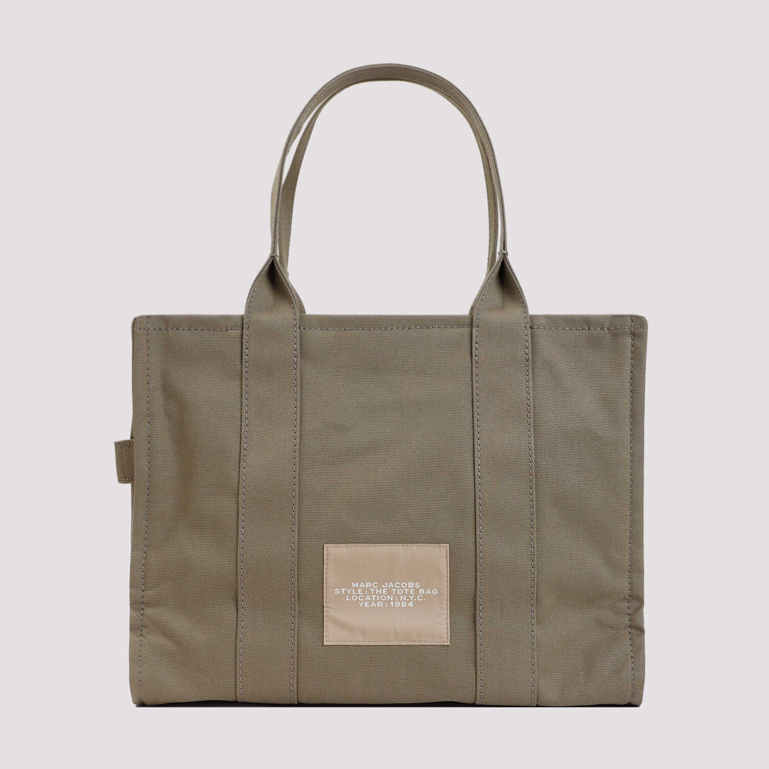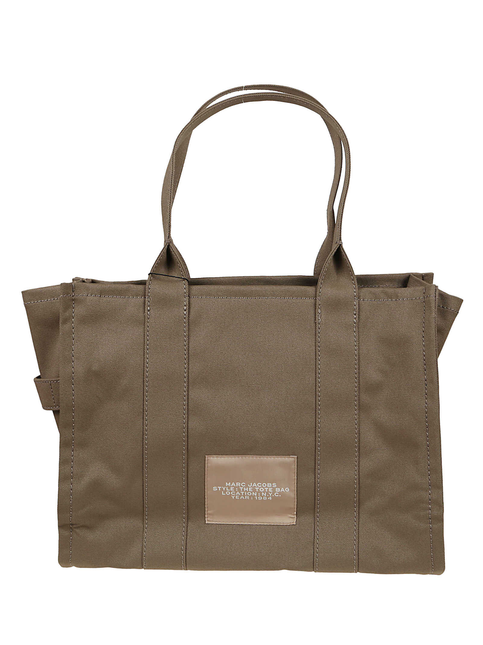 Marc Jacobs The Large Tote Bag in Slate Green cotton. Slate Green cotton, top zip fastening, handle on top. 1 interior zip pocket, 2 slip pockets, 1 card slot. Fully lined, The Tote Bag printed on front in contrasting white