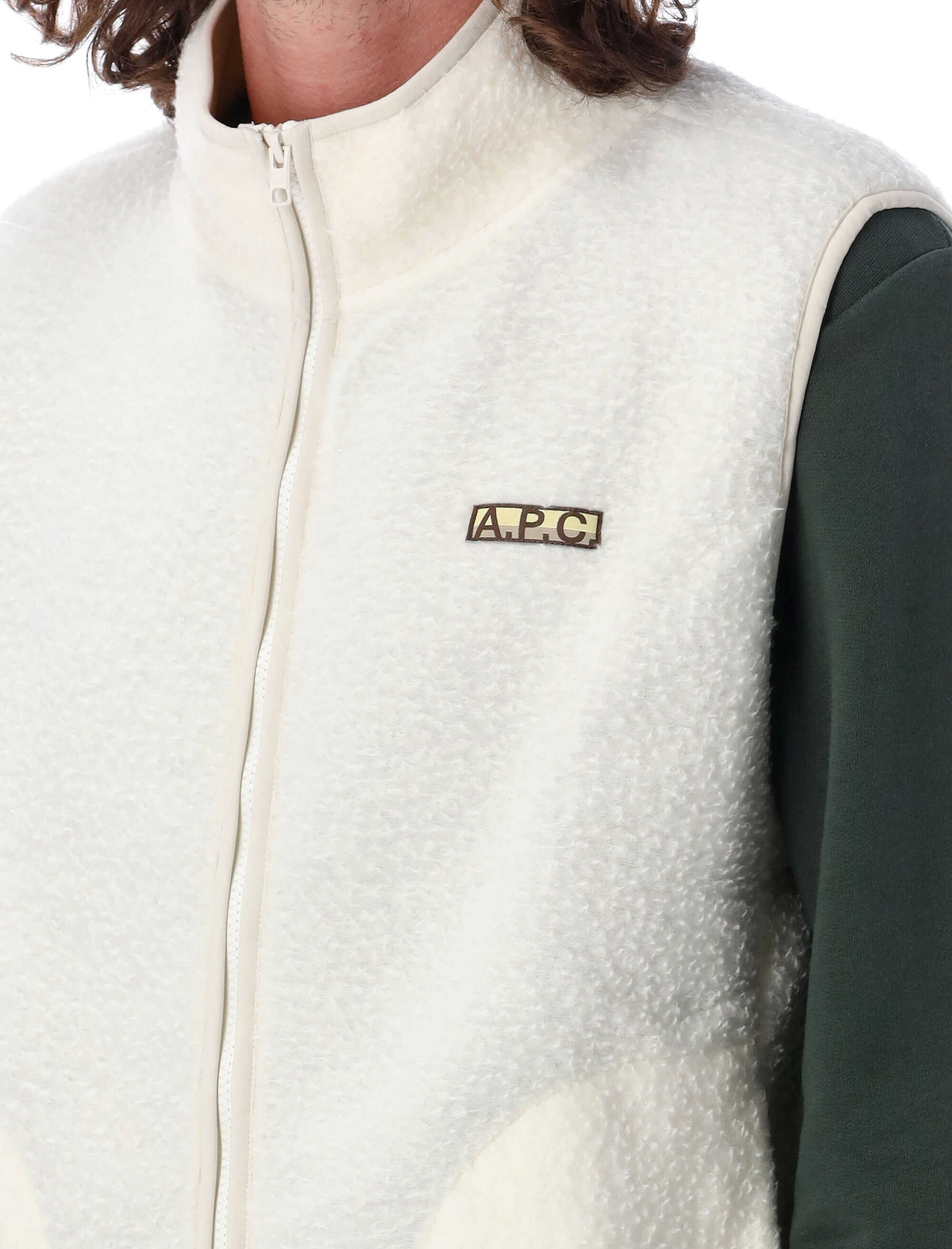 Stay warm and stylish with the Sequoia pile vest by A.P.C. This vest features a regular fit, soft sherpa fleece fabric, high stand collar, and front zip closure. Complete with the embroidered A.P.C. logo on the chest and two side pockets. Perfect for layering up in the colder months.