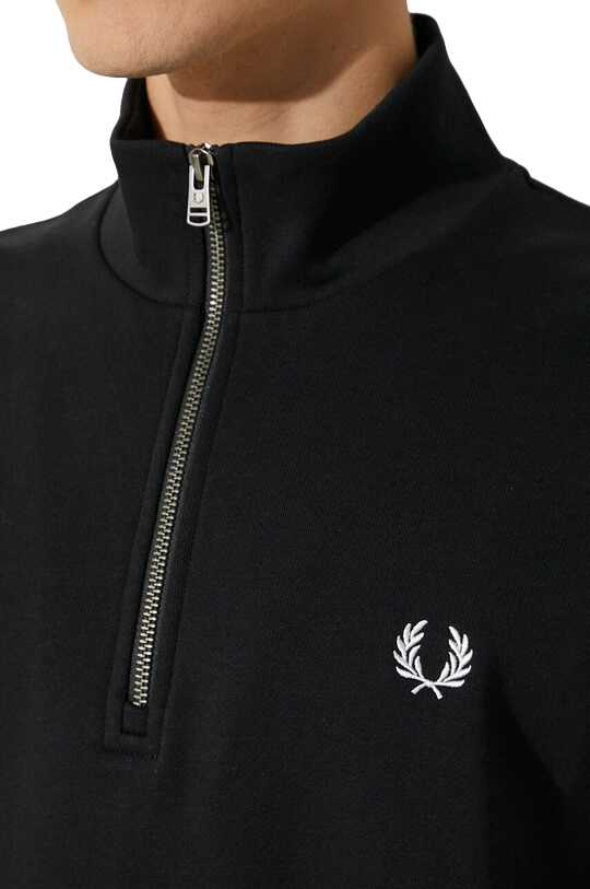 Fred Perry sweatshirt made of patterned knit. The model made of an extremely comfortable cotton fabric. Straight cut that allows freedom of movement. Long sleeve. High collar. Short zip. Embroidered logo. Fine-knit stretch fabric. Ribbed cuffs and hem for protection against adverse weather conditions.