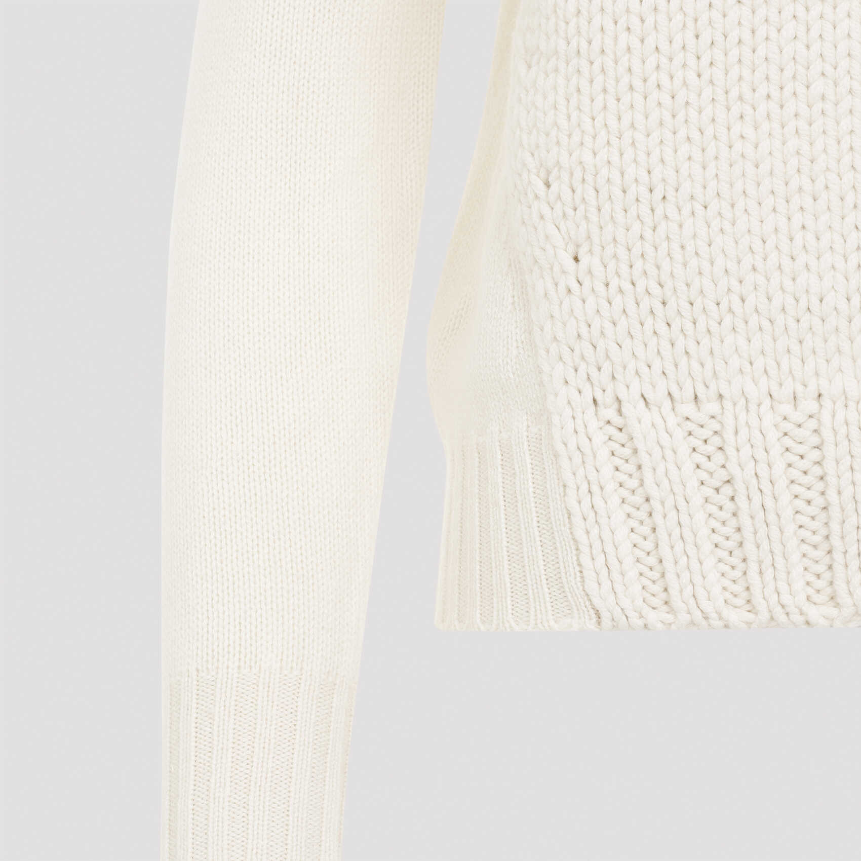 Stay cozy and stylish in this elegant White FABIANA FILIPPI sweater. Made with a luxurious blend of 75% Virgin Wool, 15% Silk, and 10% Cashmere, this sweater is perfect for any occasion. Elevate your wardrobe with this timeless piece.