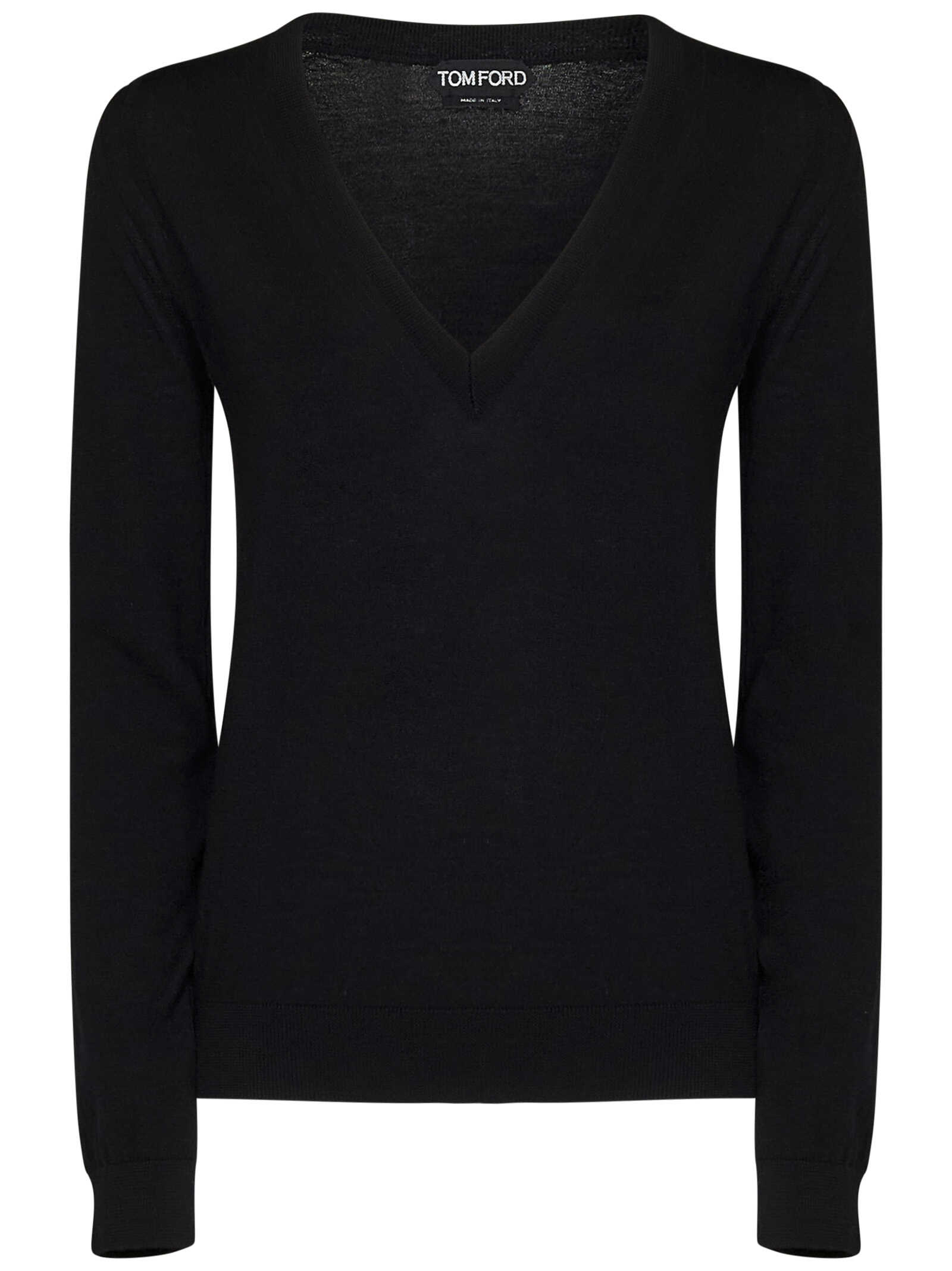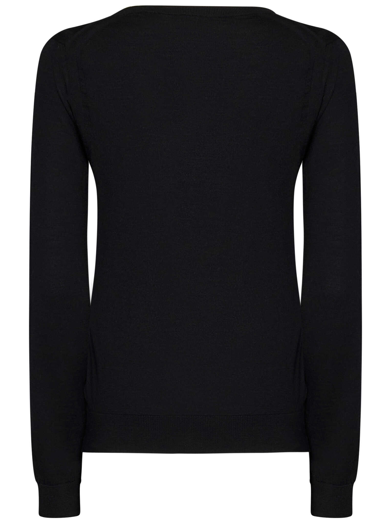 Virgin wool knitted sweater with V-neckline profiled with micro holes.