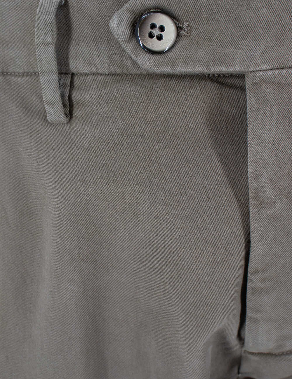 Upgrade your wardrobe with these stylish mud-colored trousers from MICHAEL COAL. Made from a blend of 97% cotton and 3% elastane, these slim fit capri trousers feature a button placket, zip fastening, and front and back pockets for added convenience. Elevate your everyday look with this timeless piece that exudes elegance and sophistication.