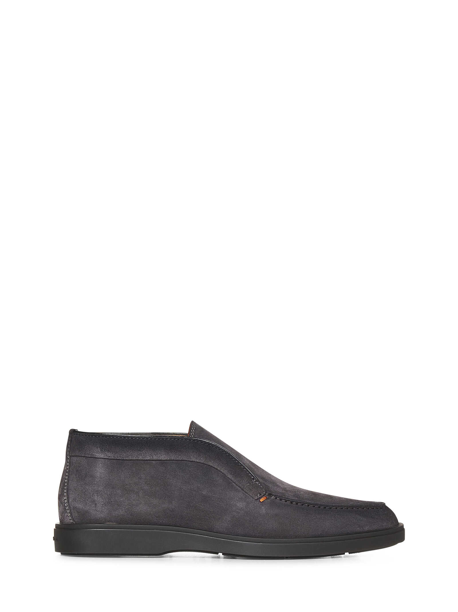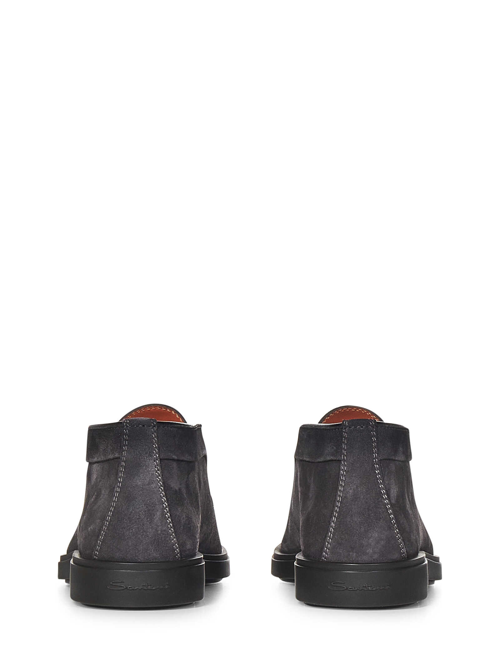 Desert grey suede ankle boots with hand-stitched apron and tone-on-tone rubber sole.