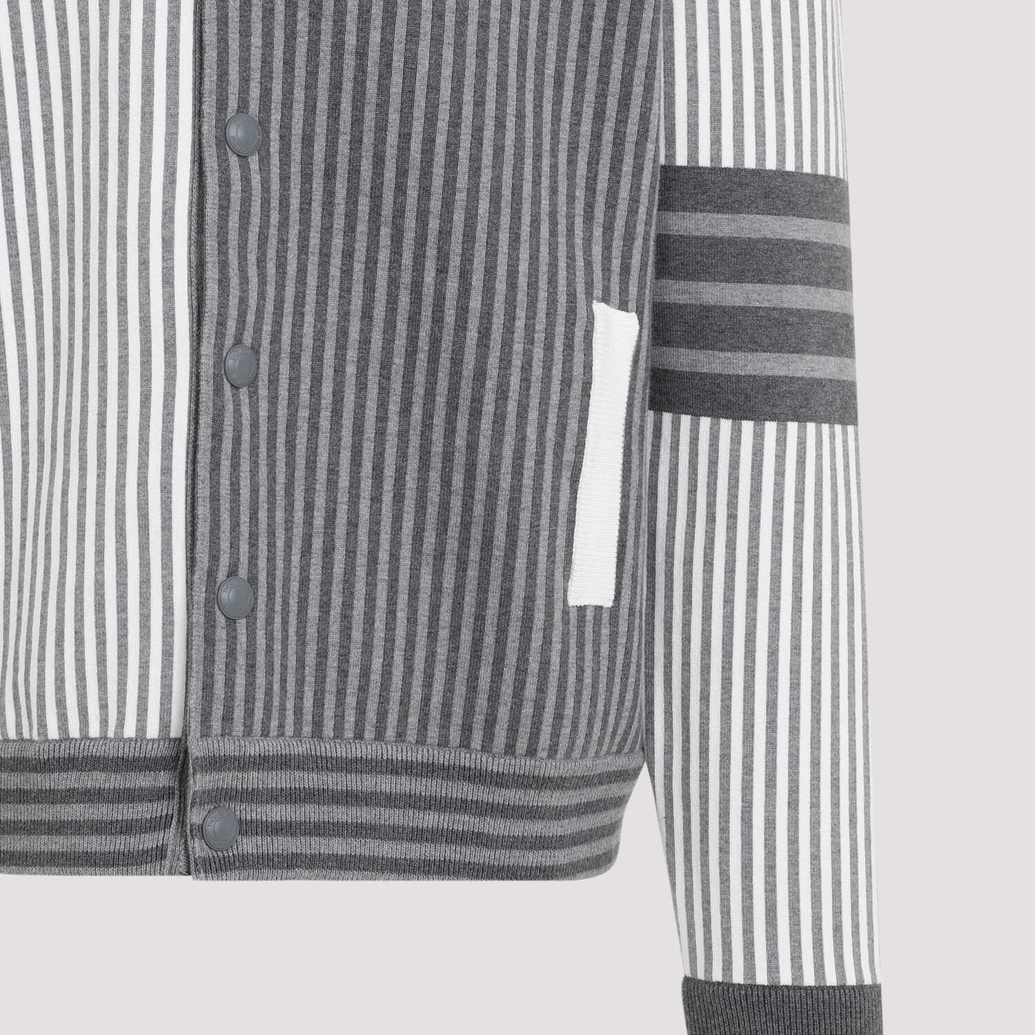 Elevate your style with the THOM BROWNE MKJ116F.Y3007 jacket. Made from a premium cotton blend, this sleek bomber features a classic polo collar, magnetic snap closure, and signature 4-bar stripe detail. Stay on-trend with this versatile piece that effortlessly combines comfort and luxury. Perfect for any occasion.