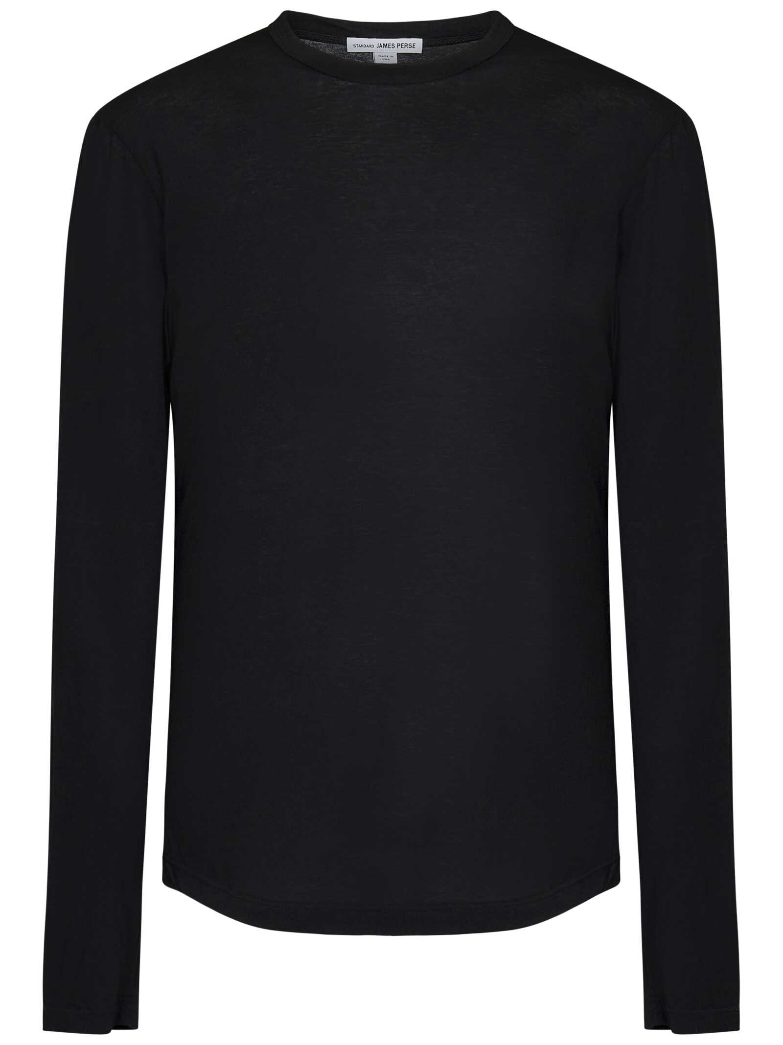 Long-sleeved T-shirt in garment-dyed black Supima cotton jersey.