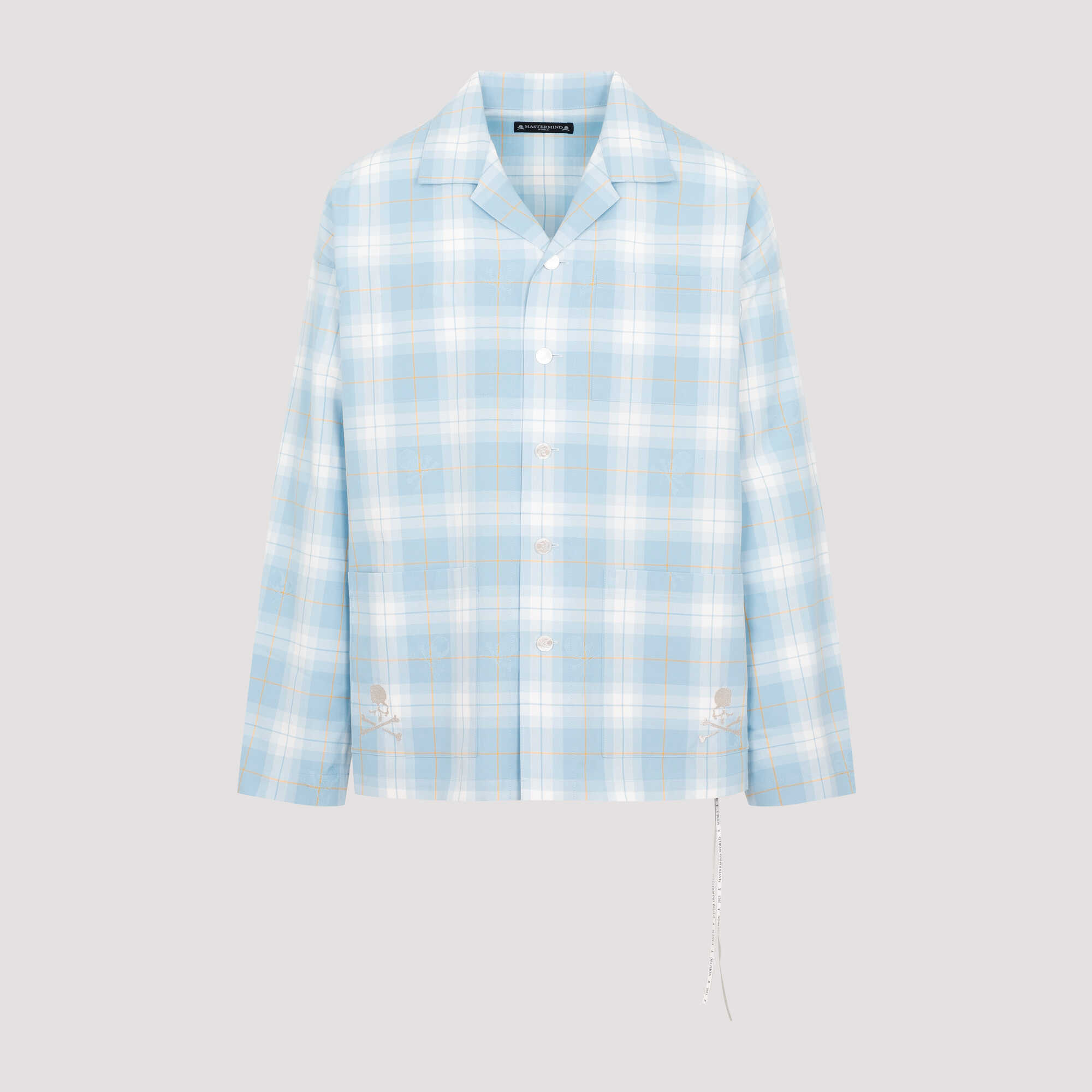 Elevate your style with the MASTERMIND MW23S10.SH024 shirt. Made from 100% pure blue cotton, this plaid shirt features a unique check pattern, cuban collar, long sleeves, and logoed details. Perfect for a casual yet sophisticated look. Stand out with this statement piece.