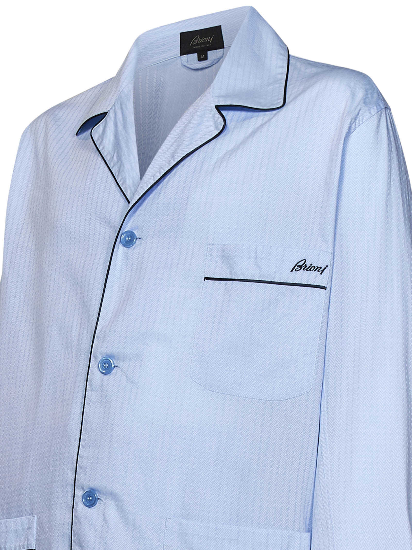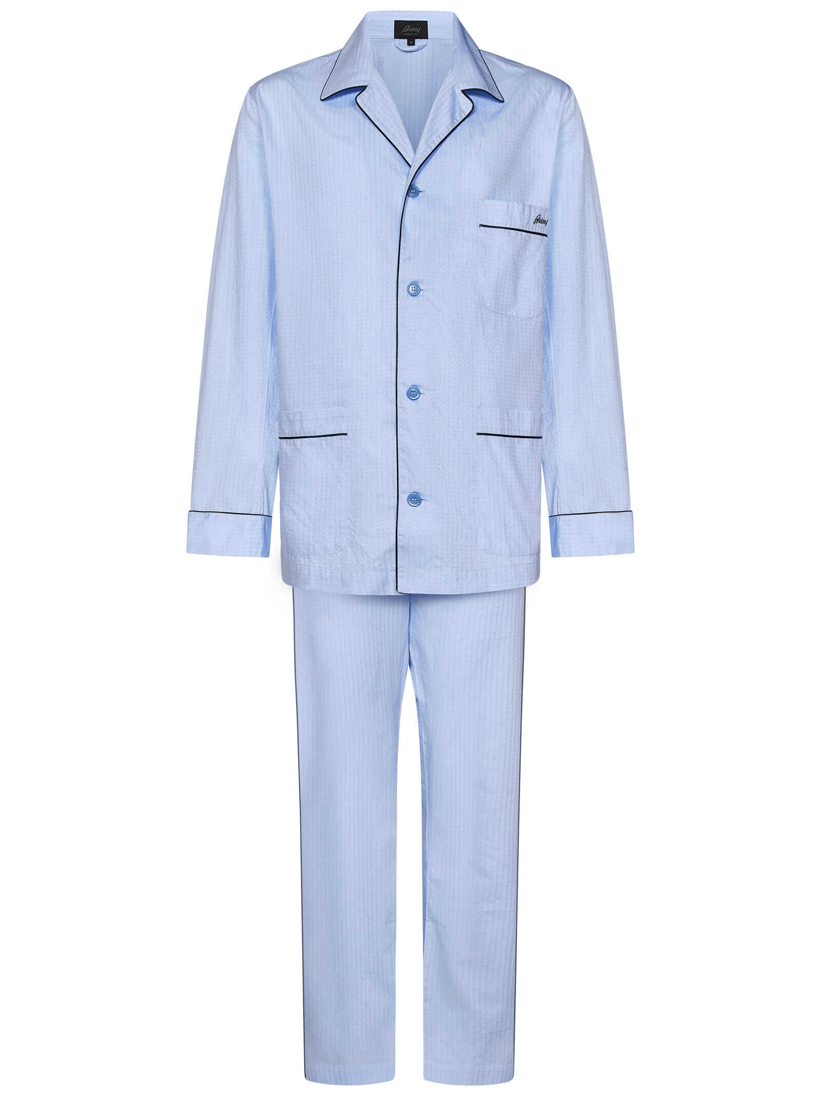 Light blue striped jacquard cotton pajama set with contrasting piping and embroidered logo.