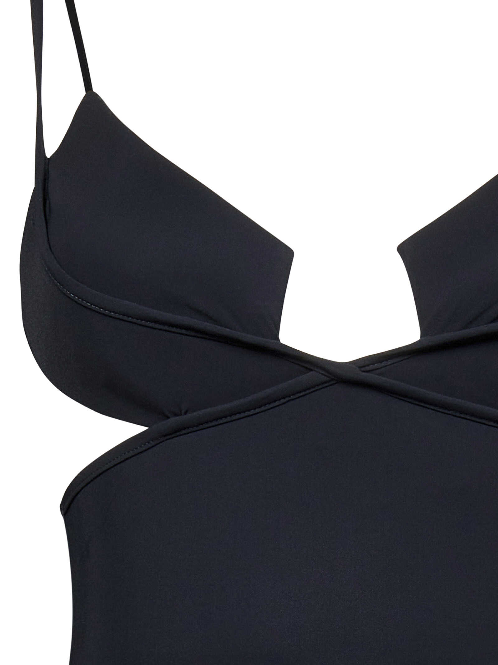 Black one-piece swimsuit in opaque stretch jersey with square cups.