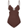 Earth brown one-piece swimsuit in opaque stretch jersey with square cups.