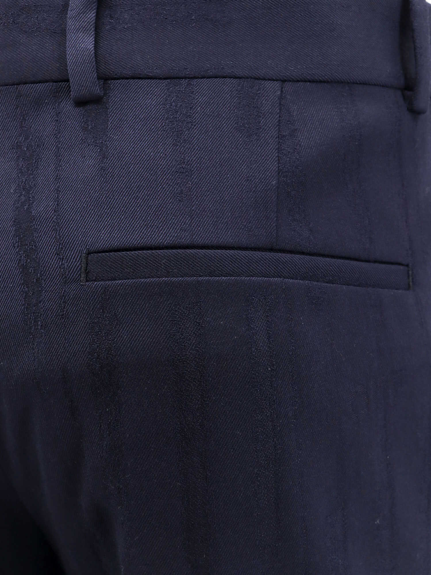 Closure with hook, button and zip, Frontal slant pockets and back welt pockets, Back embroidered logo, Made in Italy, 98% virgin wool 2% elastane