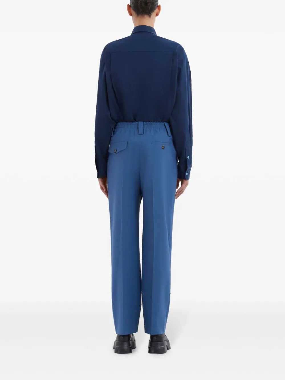 Elevate your wardrobe with these luxurious Navy Blue Wool Pants from MARNI. Crafted from 100% Virgin Wool, these pants are perfect for any occasion. With a sleek design and high-quality material, these pants are a must-have for any fashion-forward individual. Add a touch of sophistication to your look with these stylish pants.