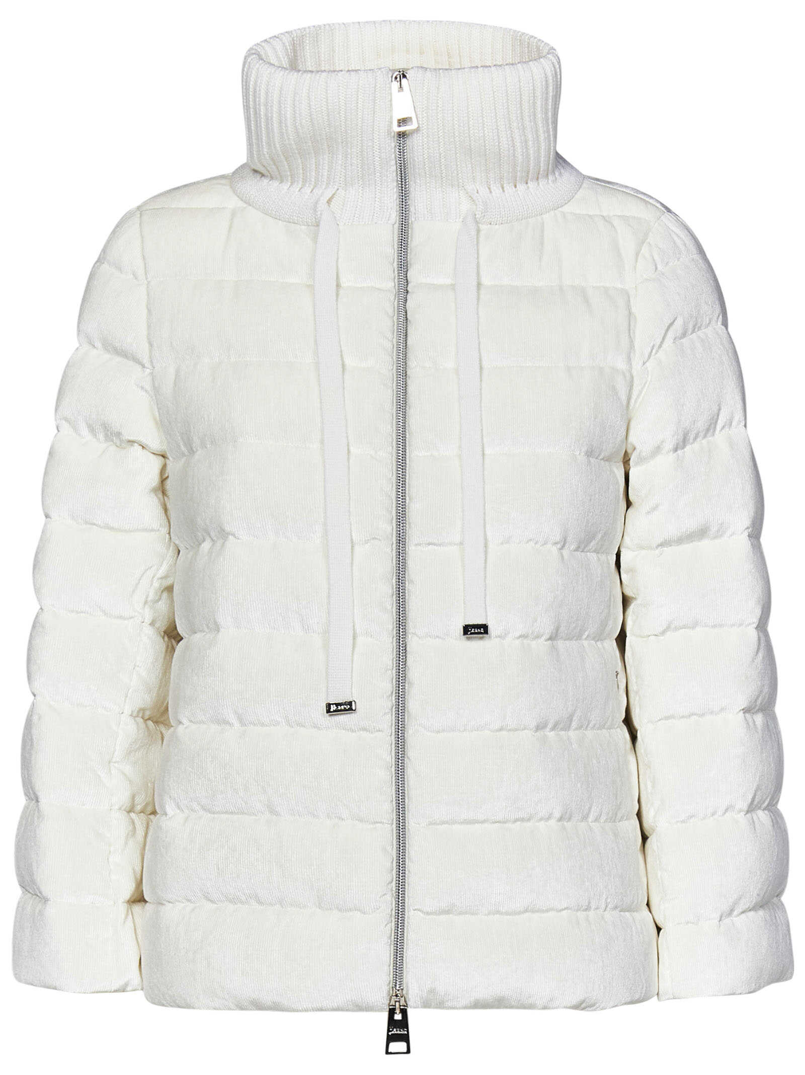 RESORT white corduroy-effect viscose velvet padded cape with knit collar.