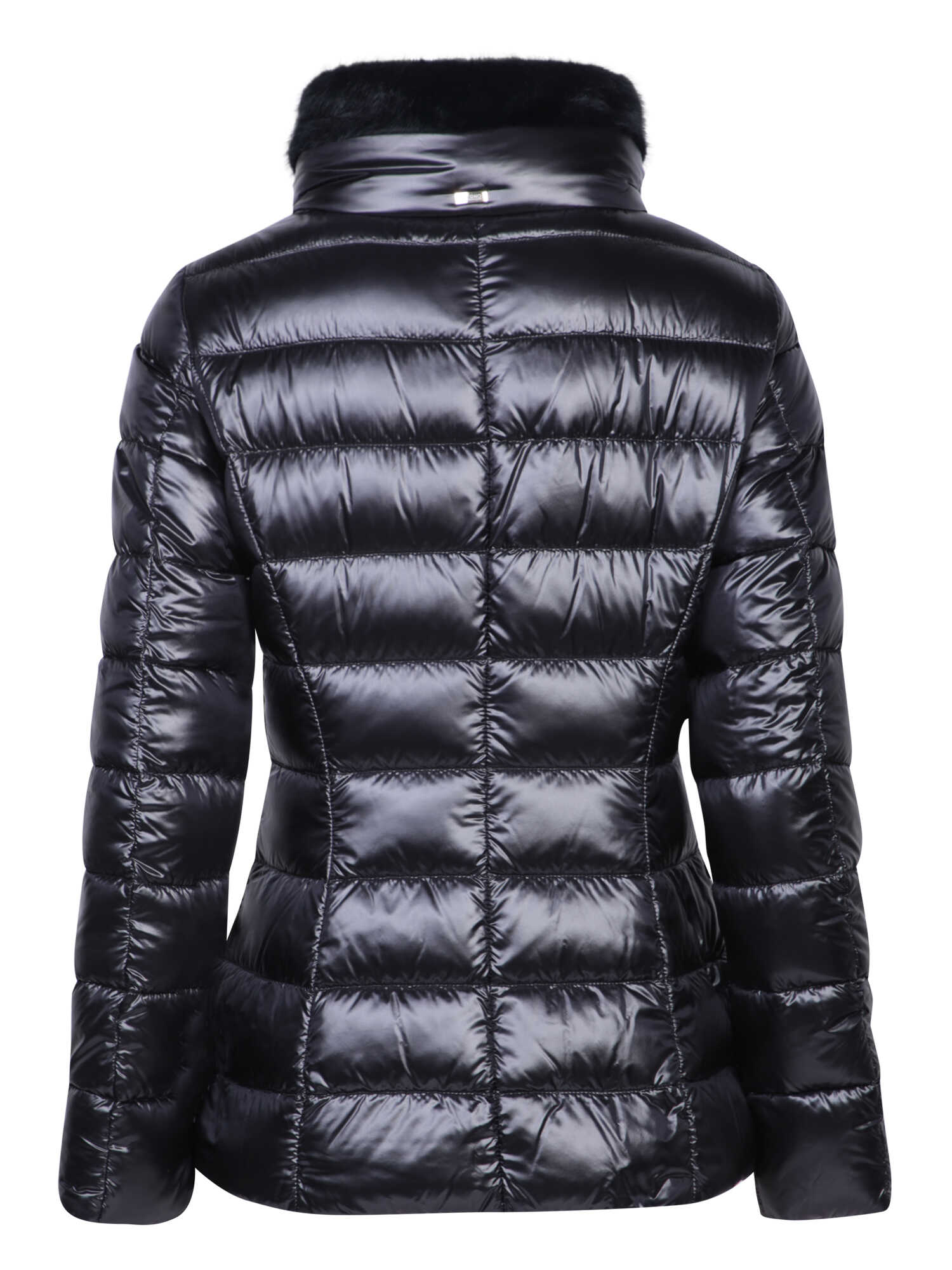 Experience winter elegance with the HERNO Black Jacket. Crafted from 100% Polyamide, this padded jacket features a luxurious synthetic fur hood, front zip closure, and side zip pockets. The sophisticated belted design creates a slender silhouette, making it a must-have for the season.