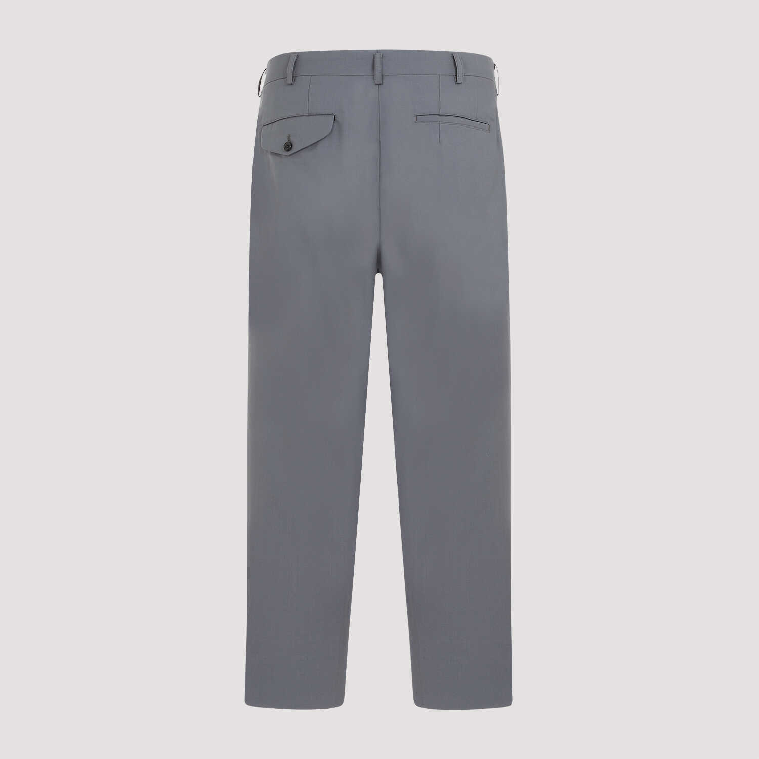 Comme Des Garcons Homme Plus Gray Wool Pants. Gray wool, regular waist, belt loops, front button and zip fastening, straight legs, pleat detailing, 4-pocket style, regular fit.