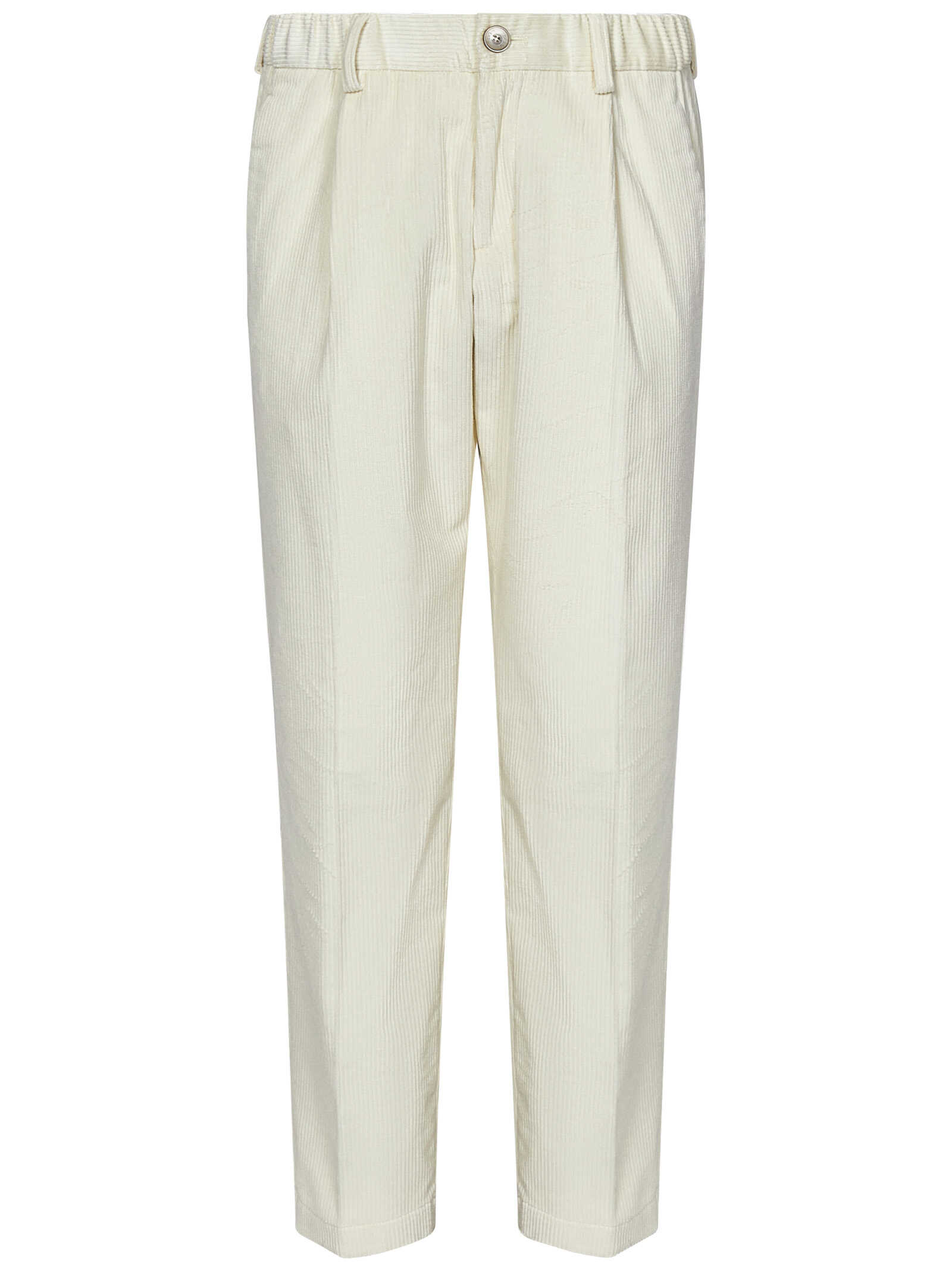 Mid-rise tapered trousers in cream white corduroy.