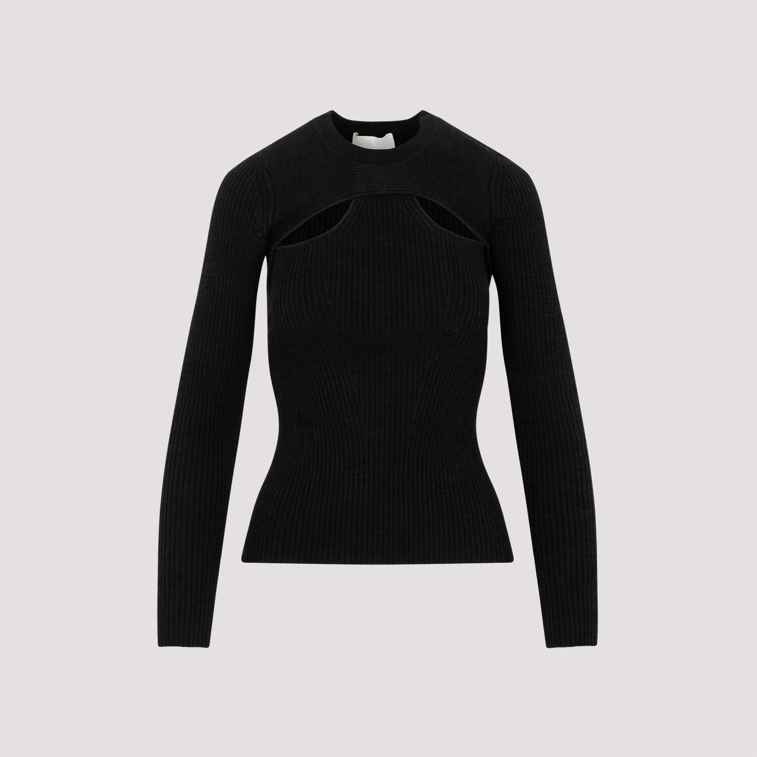 Stay cozy and stylish in this Isabel Marant black wool Zana sweater. Made with a luxurious blend of merino wool, polyester, polyamide, and elastane. Featuring a chic round neck, trendy cut-out detail, and flattering ribbed design. Perfect for any occasion, this sweater is a must-have for your winter wardrobe. Elevate your look with the effortlessly cool style of Isabel Marant.