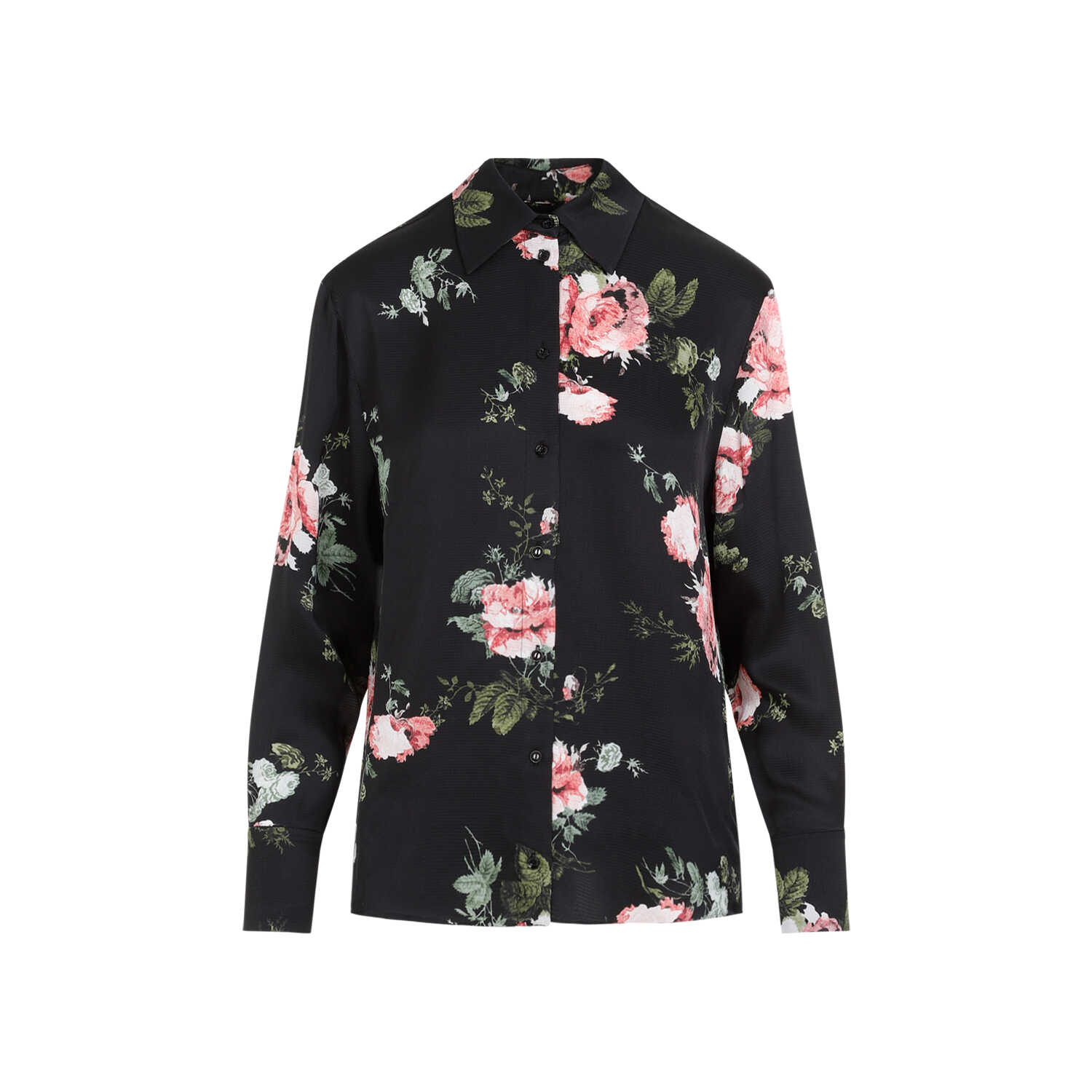Elevate your style with this elegant ERDEM R1T905PCSS shirt. Made from 100% viscose fabric in classic black color, featuring a pointed neck, front buttoned fastening, and pink printed roses pattern. Perfect for a sophisticated look that stands out in any occasion.