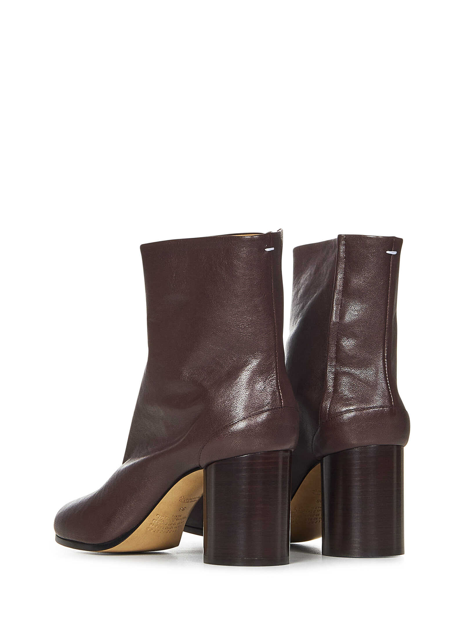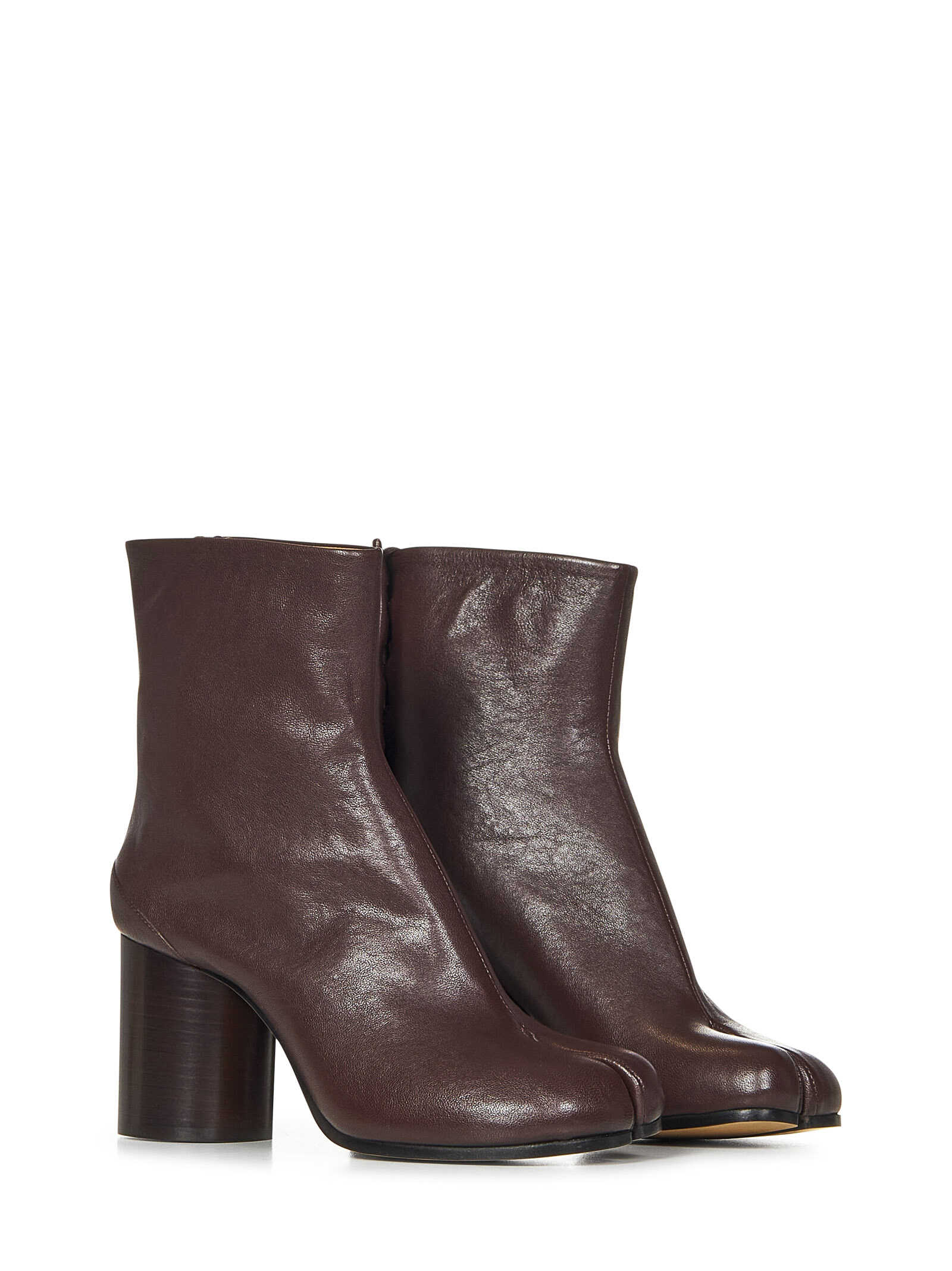 Brown vintage nappa leather Tabi ankle boots with Tabi split-toe and cylindrical heel.