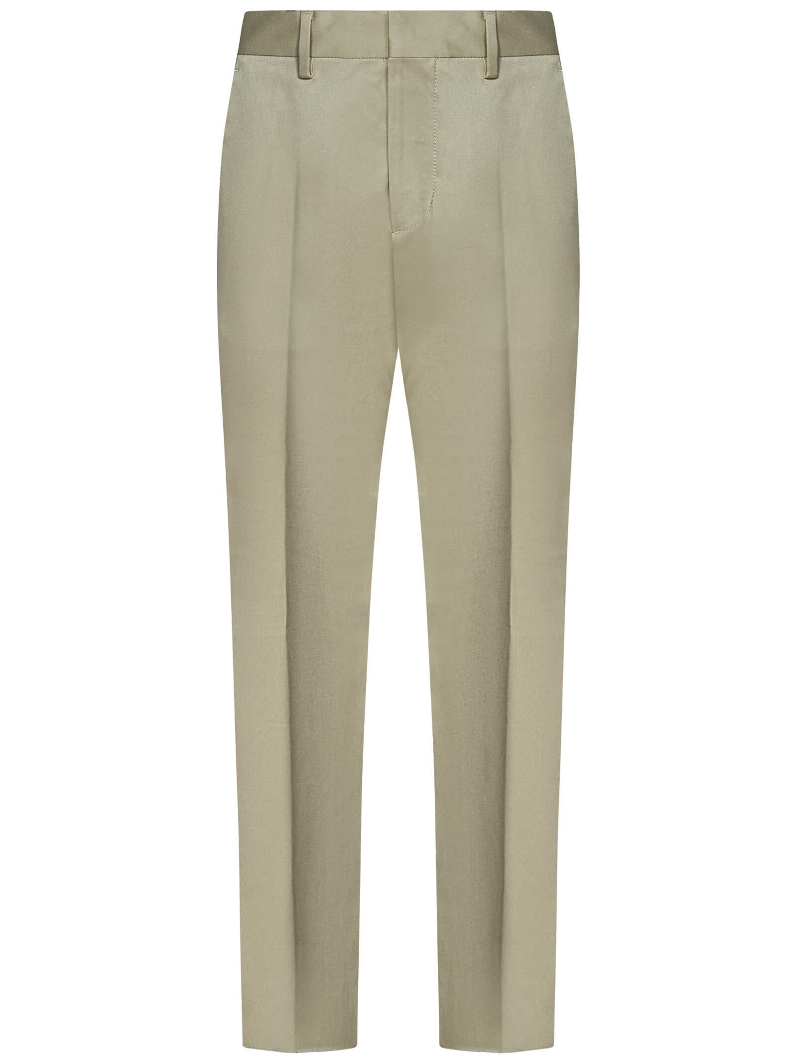 Beige stretch cotton Cool Guy trousers with logo plate at back.