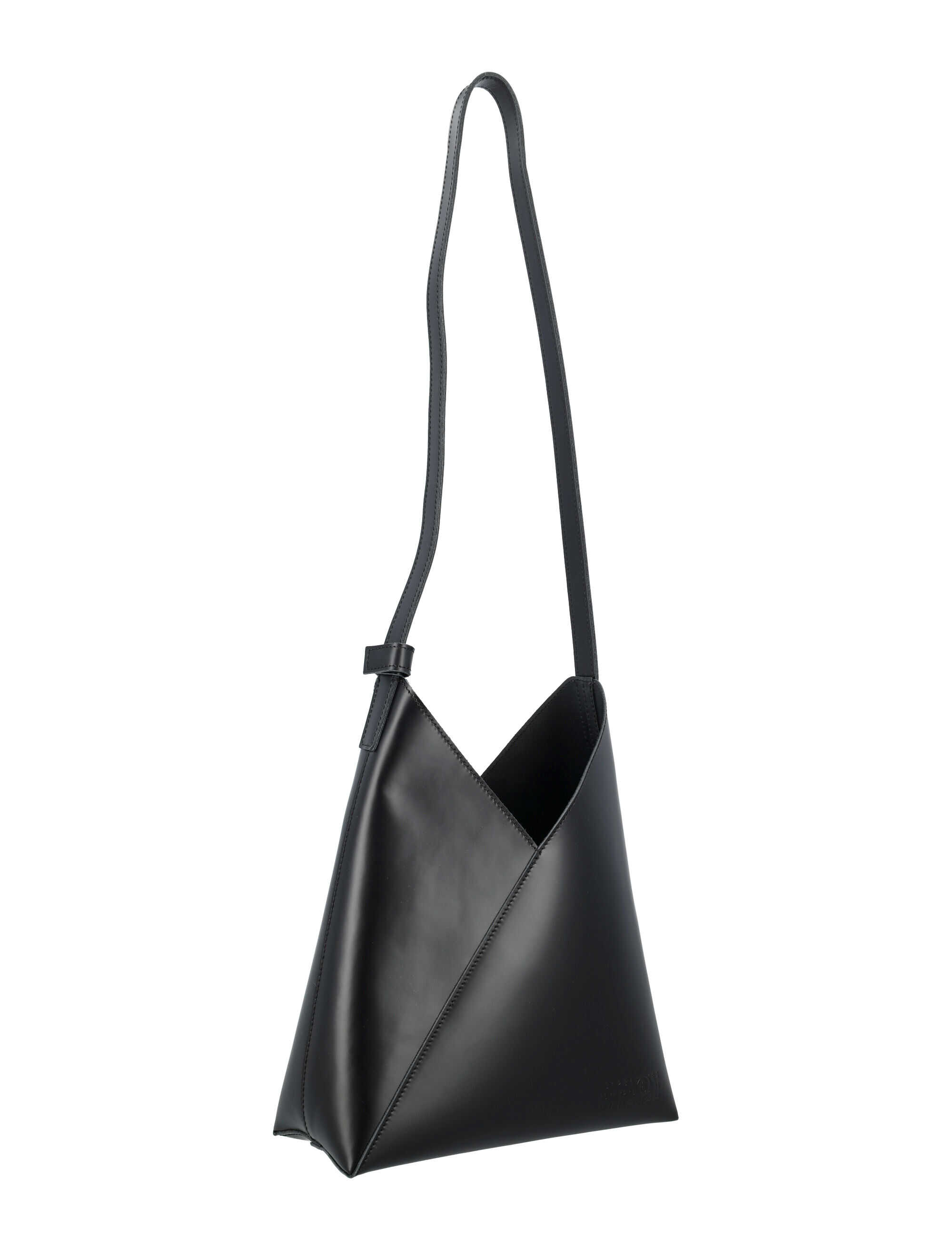 Elevate your style with the Fortune Cookie small bag from MM6 Maison Margiela. Made from luxurious bovine leather, this bag features an origami-inspired geometric design and an adjustable shoulder strap for a chic look. Perfect for any occasion, this bag is sure to turn heads and make a statement. Height: 27cm Width: 23.5cm Depth: 9cm