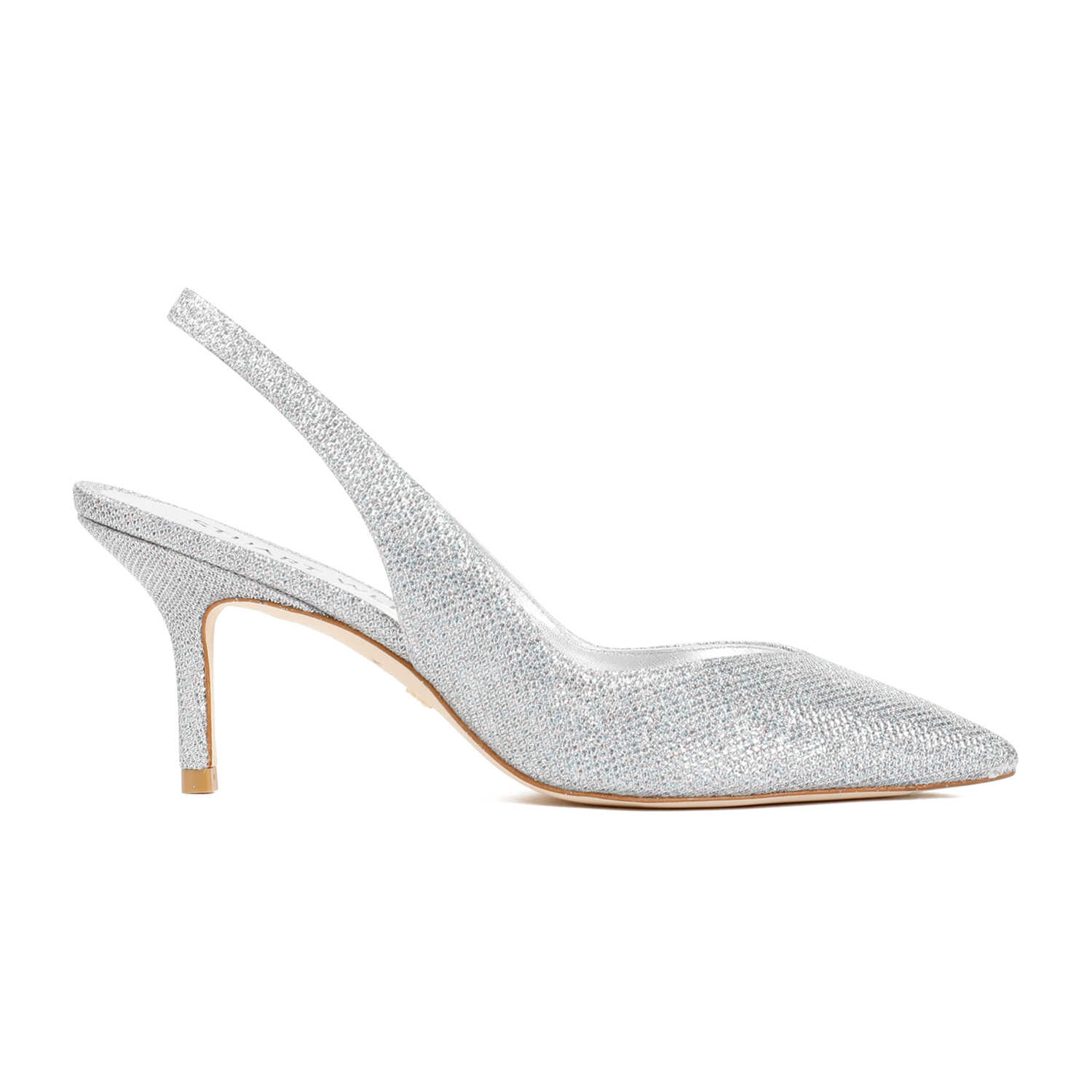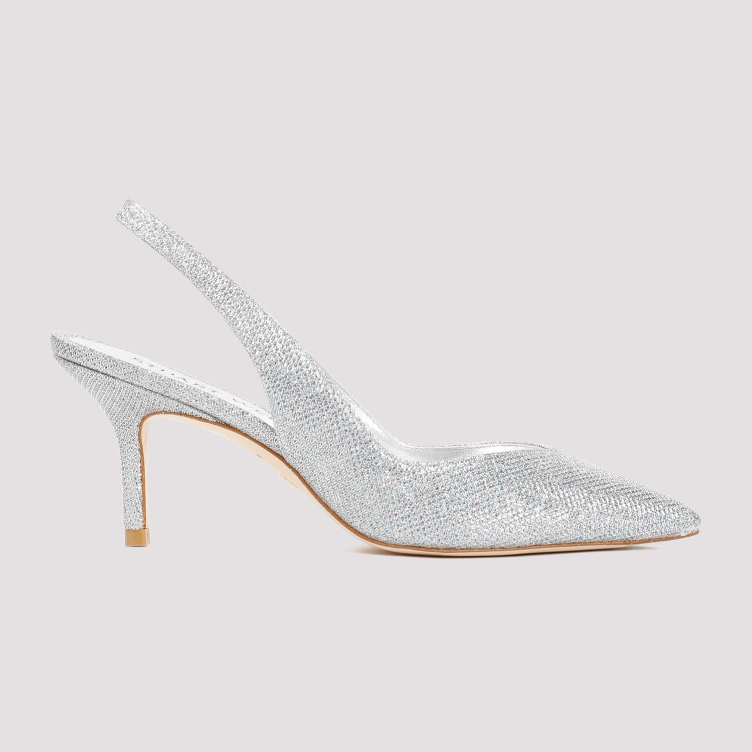 Step out in style with these stunning Stuart Weitzman SG903.NEN metallic sandals. Crafted from 100% leather and textile materials, featuring a sleek pointed toe and comfortable 7.5cm stiletto heel. Perfect for any occasion.