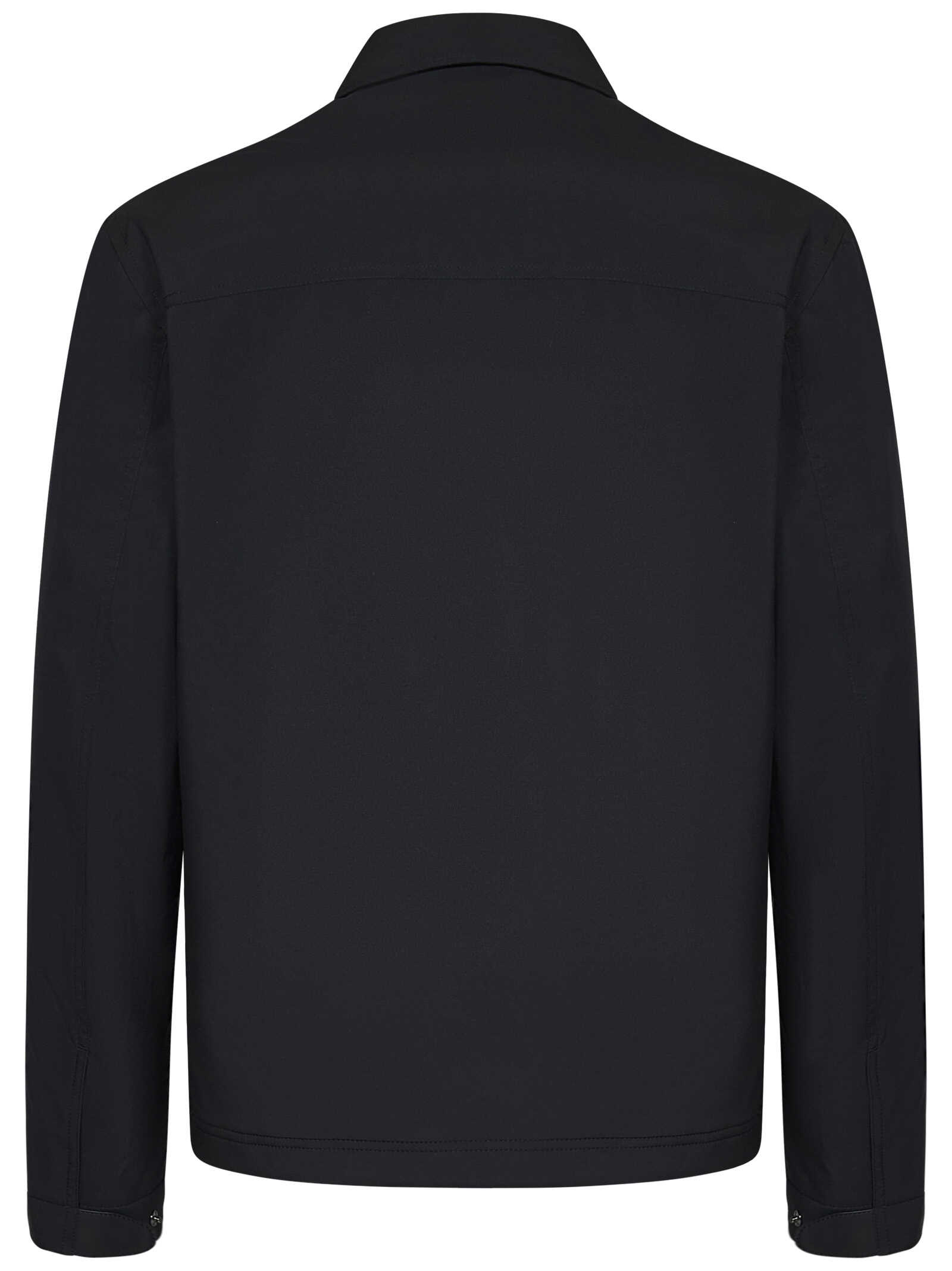 Black water-repellent and windproof blouson with shirt collar and leather details.