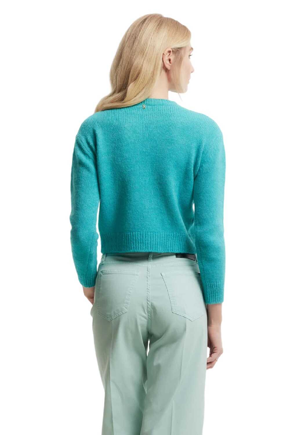 Elevate your wardrobe with this stunning green pullover from KOCCA. Crafted from a luxurious blend of acrylic, polyamide, wool, and viscose, it features charming chain stitch embroidery. Perfect for stylish comfort in any season.