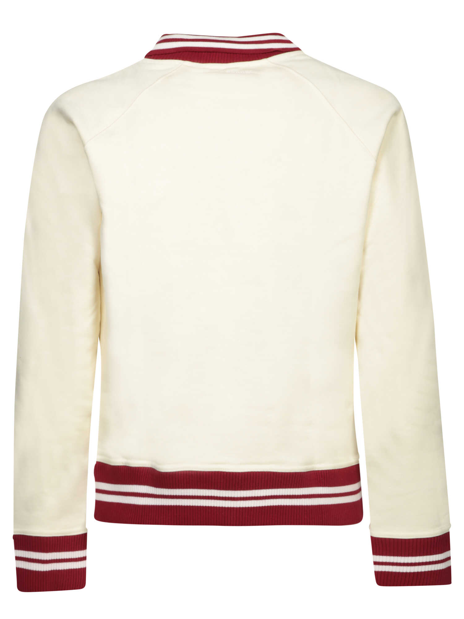 Ribbed collar. Contrast facing. Rib-knit trim.. Drawing on classic collegiate designs, this Howard Sweater by Wales Bonner brings a touch of preppy nostalgia. Finished with embossed lettering and crafted from soft ivory fabric, it offers both comfort and style.