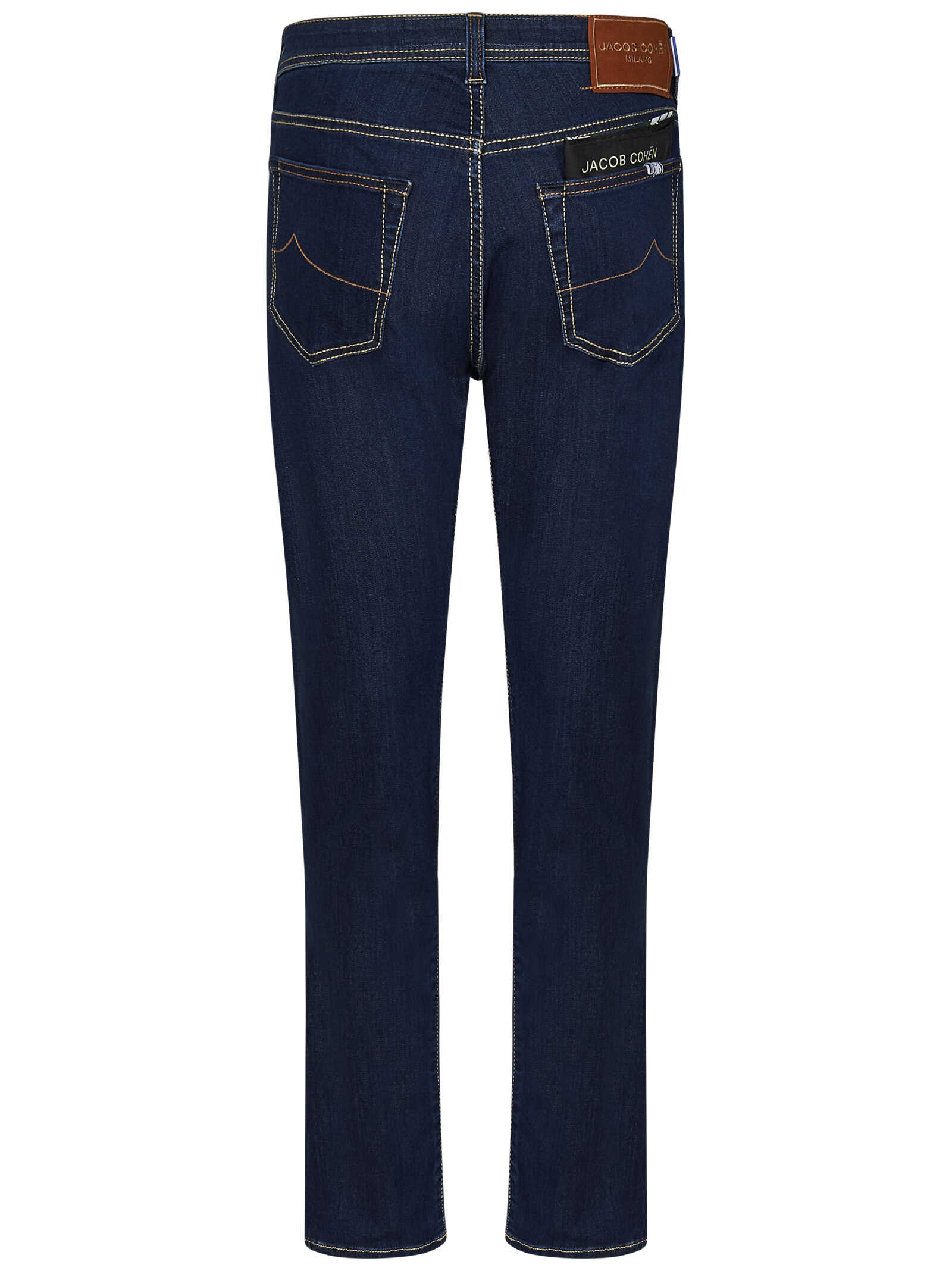 Nick slim fit skinny fit jeans in stretch cotton blend denim with logo embroidery on the fifth pocket.