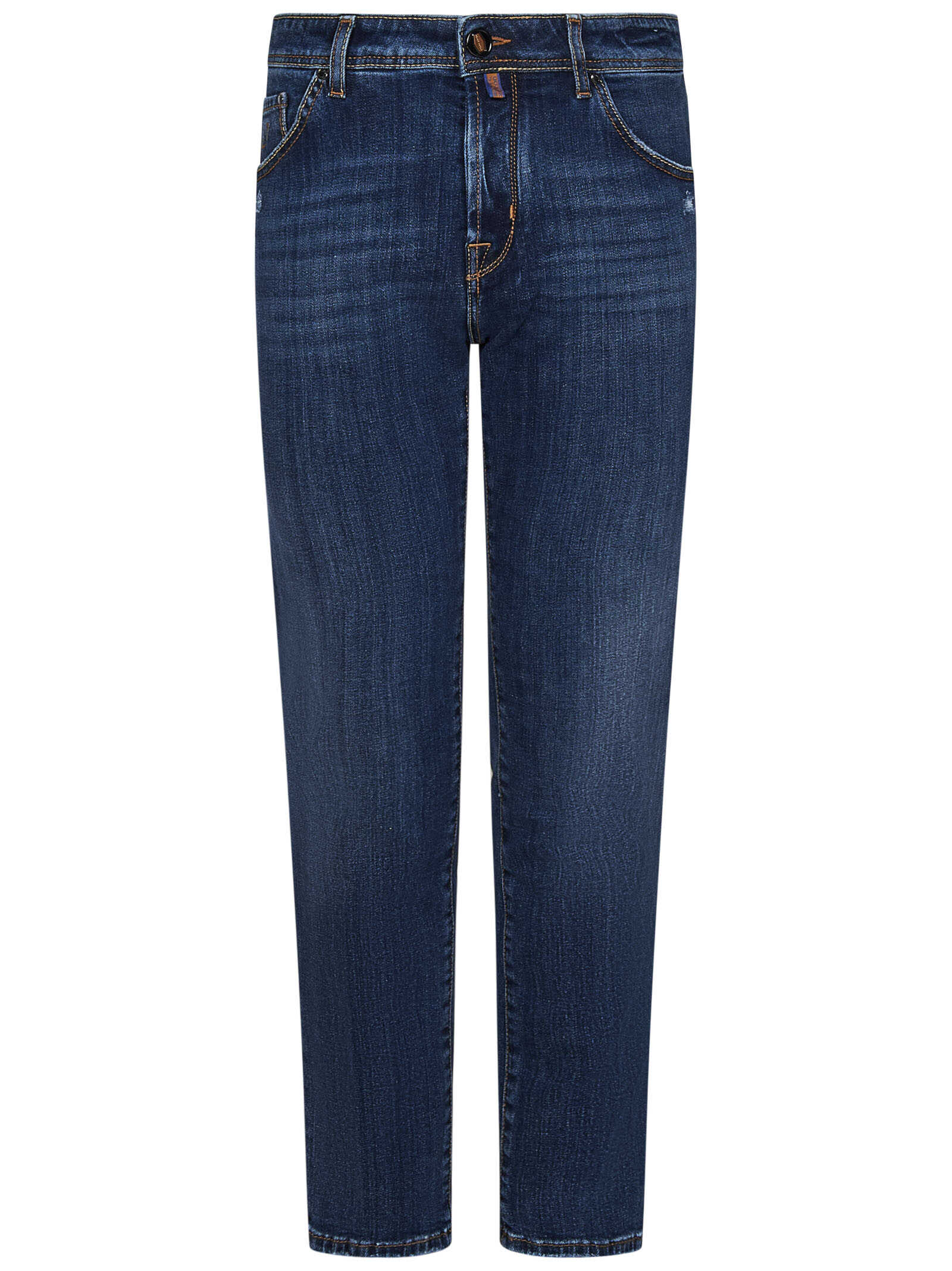 SCOTT slim-fit jeans in blue cotton denim with logo embroidery on the fifth pocket.
