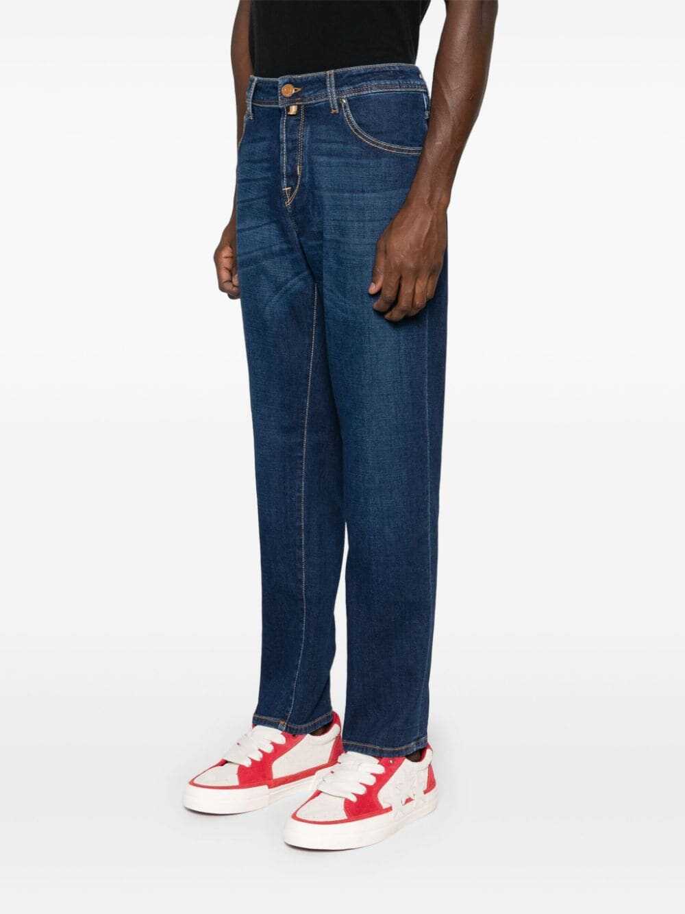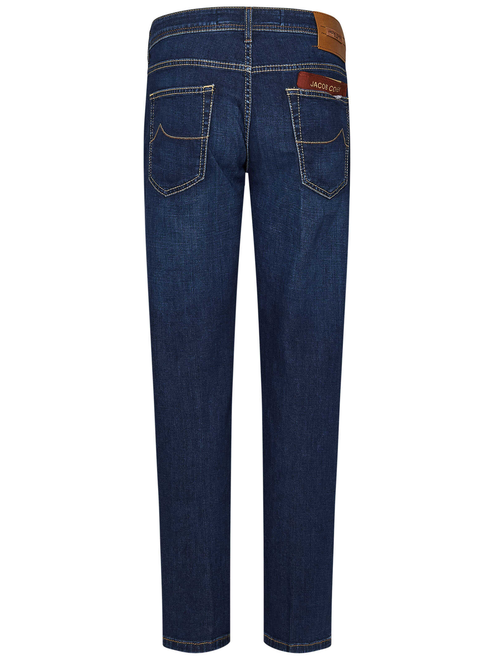 Scott Slim fit jeans in dark blue cotton denim with orange label sewn on the back.