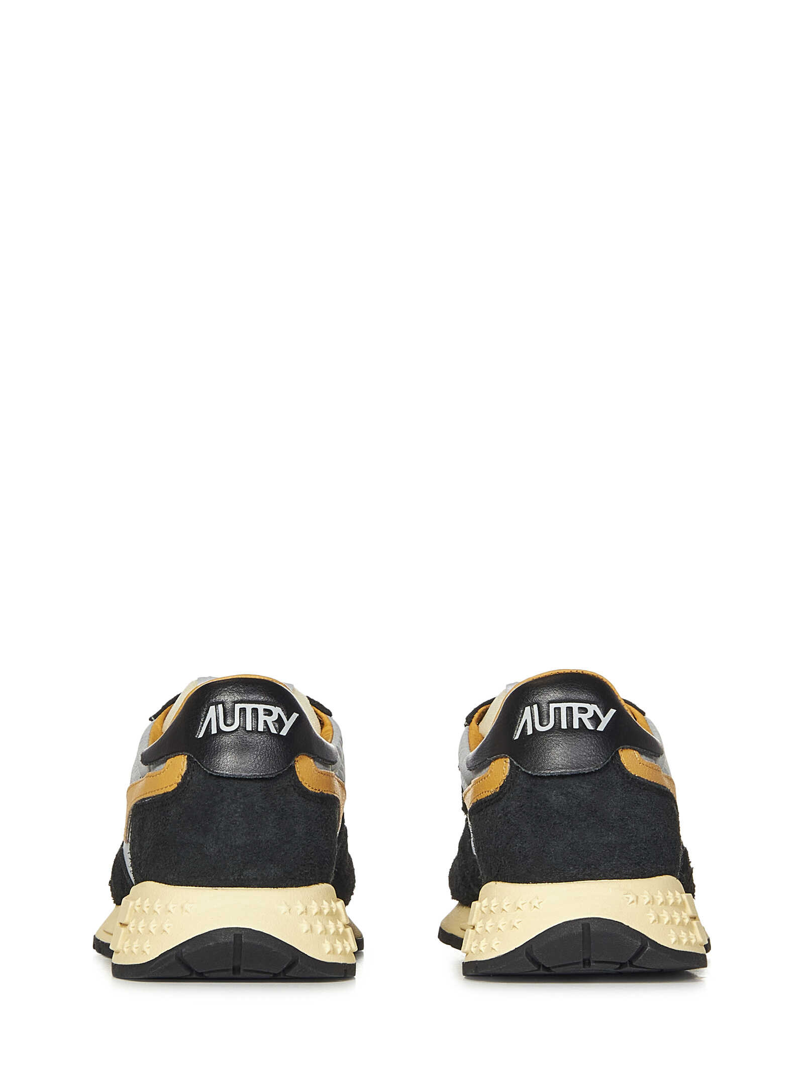 REELWIND LOW black suede and cracked leather sneakers with reflective nylon inserts