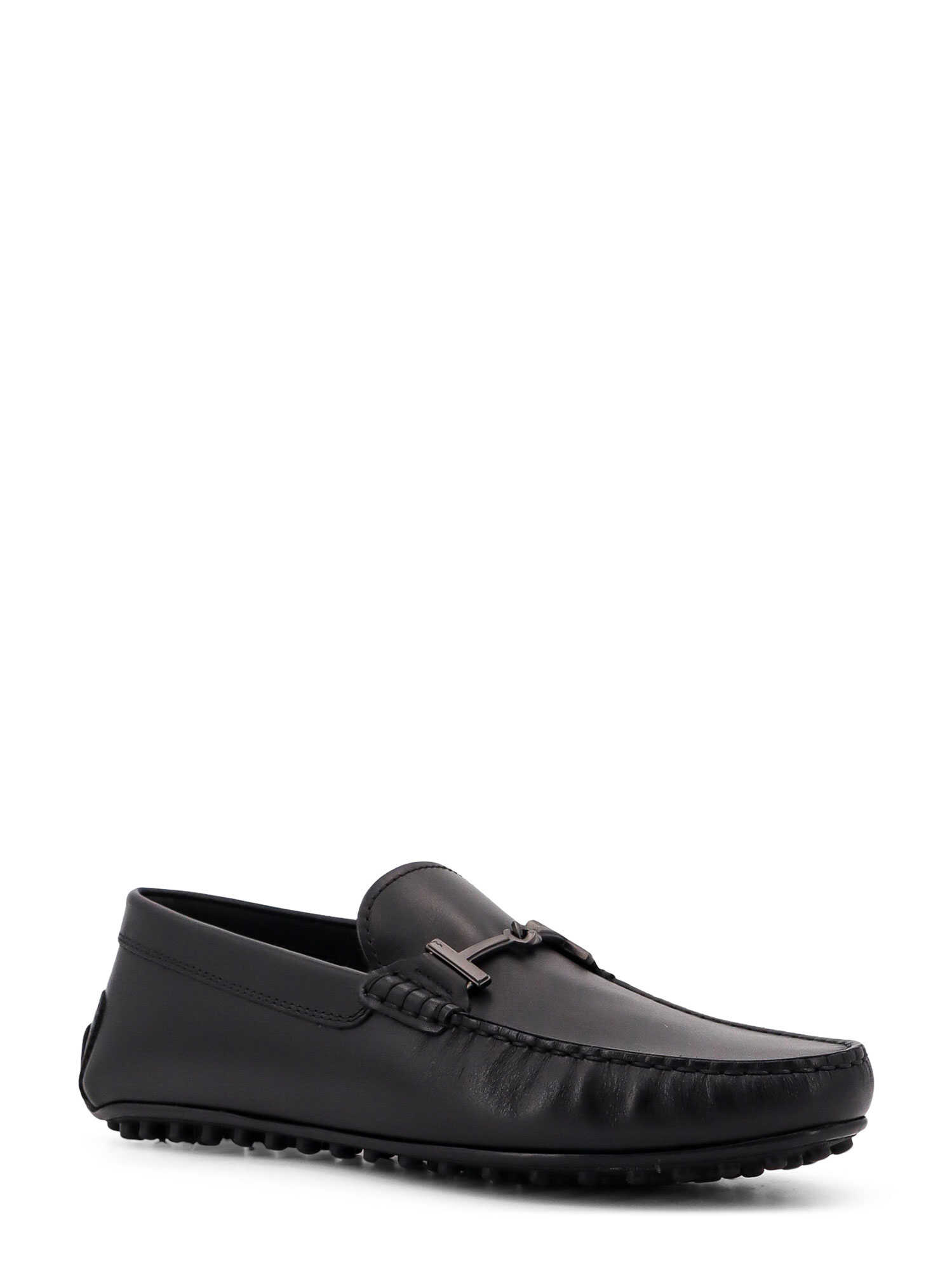 Step into luxury with TOD'S Black Leather Loafers, featuring stylish T-Ring detail and a comfortable gommino sole. Crafted in Italy, these shoes combine elegance and quality, making them the perfect choice for any sophisticated wardrobe.