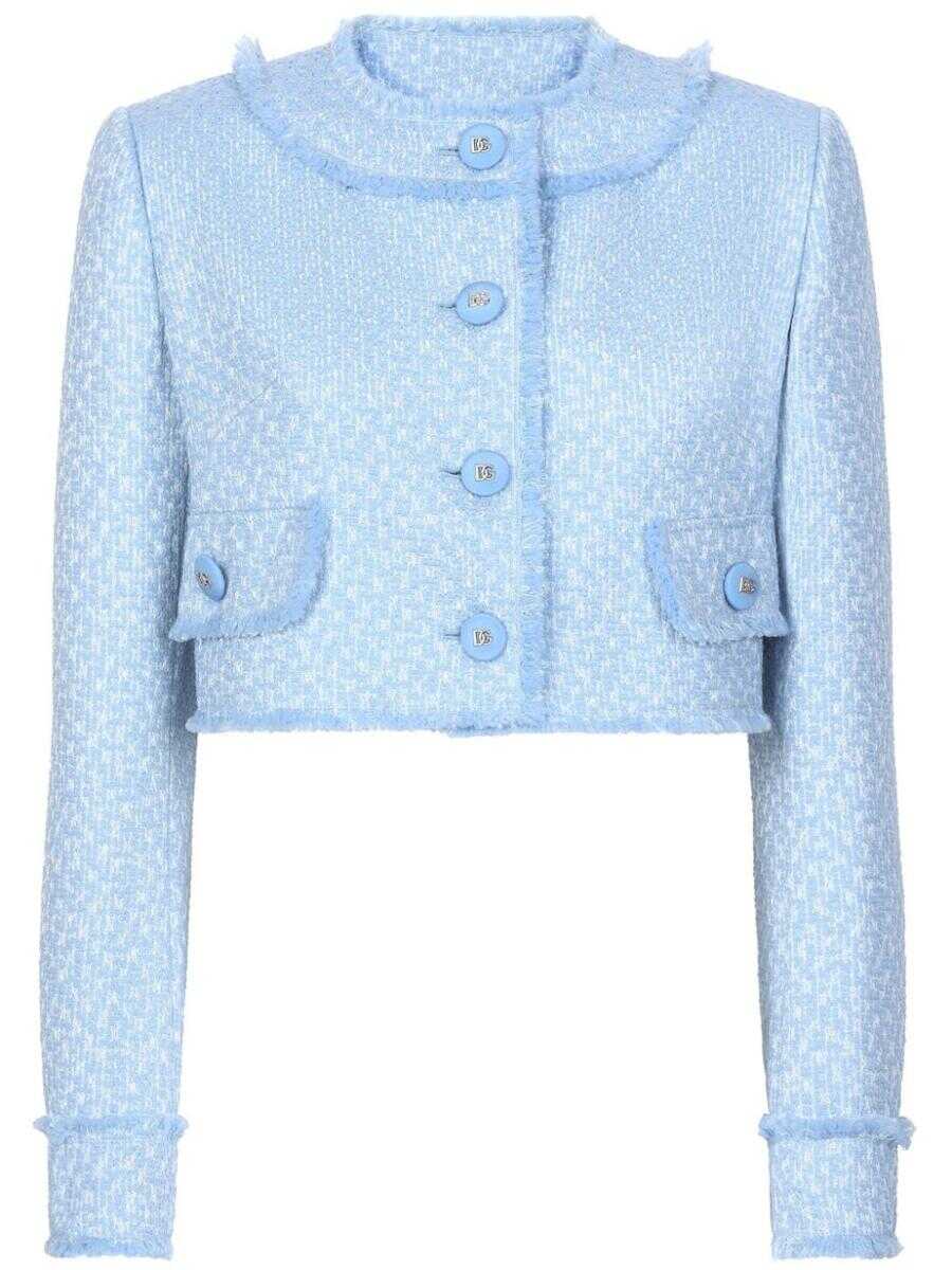 light blue textured finish button fastening round neck two side flap pockets cropped long sleeves straight hem