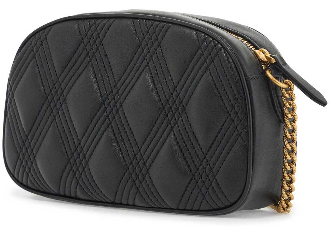 The Quiltie 67 shoulder bag by Valentino Garavani is made of quilted nappa leather with a diamond pattern outlined by tone-on-tone stitching. It features a zippered slot pocket and the classic gold Vlgo Signature on the front, as well as a main compartment lined in nappa leather with three credit card slots and a chain shoulder strap with a leather shoulder rest.