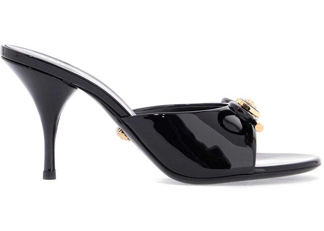 Versace's Opera Bow Mules are made of patent leather and embellished with a matching bow and the iconic Medusa element in enameled metal. The lining and insole are made of leather, while the stiletto heel is covered and the sole is made of leather.